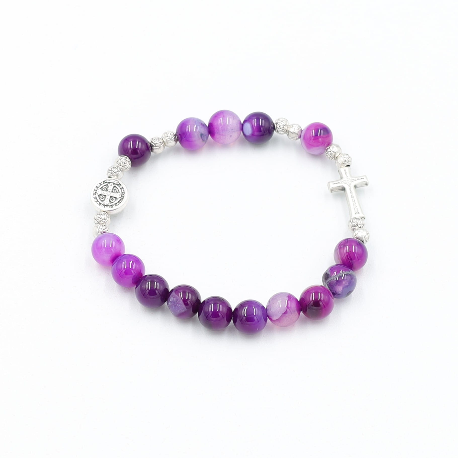 Bransoletka agat fioletowy 8 mm - przekładka Św.Benedykt (1-3-1)
