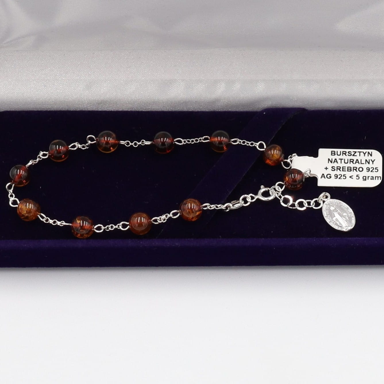 Bransoletka bursztyn naturalny + Ag 925