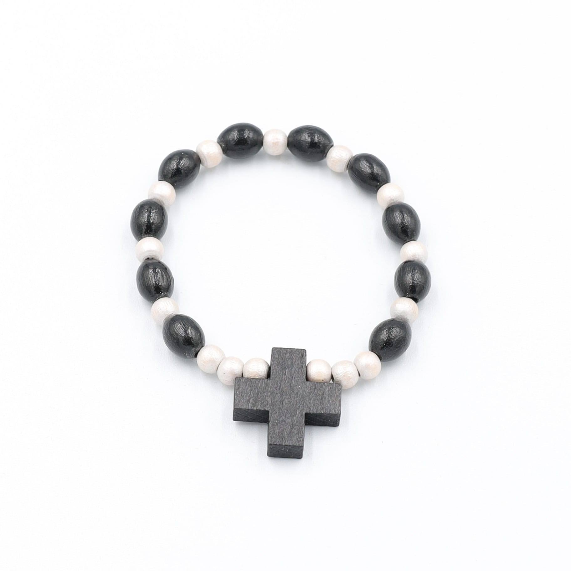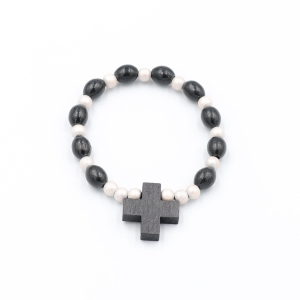 Bransoletka drewniana na gumce jubilerskiej - biały/czarny