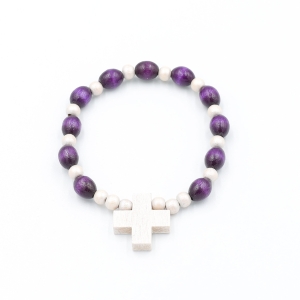 Bransoletka drewniana na gumce jubilerskiej - biały/fioletowy