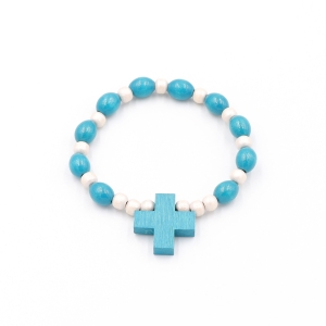 Bransoletka drewniana na gumce jubilerskiej - biały/turkusowy