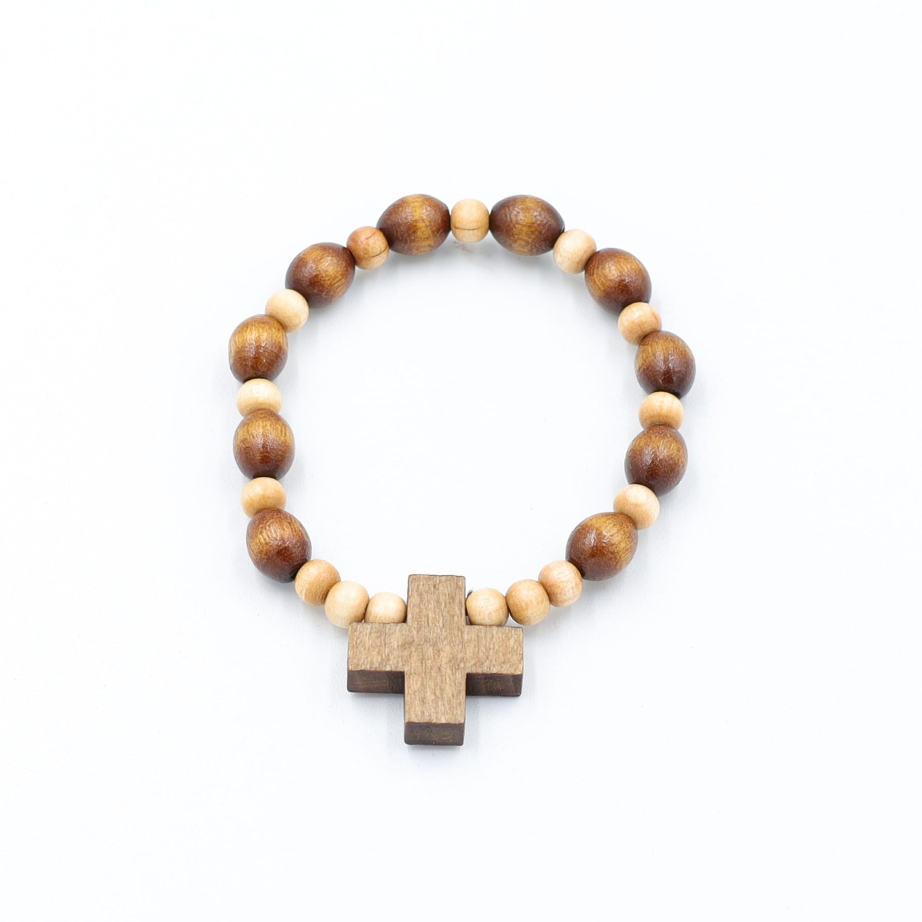 Bransoletka drewniana na gumce jubilerskiej - jasny/oliwka