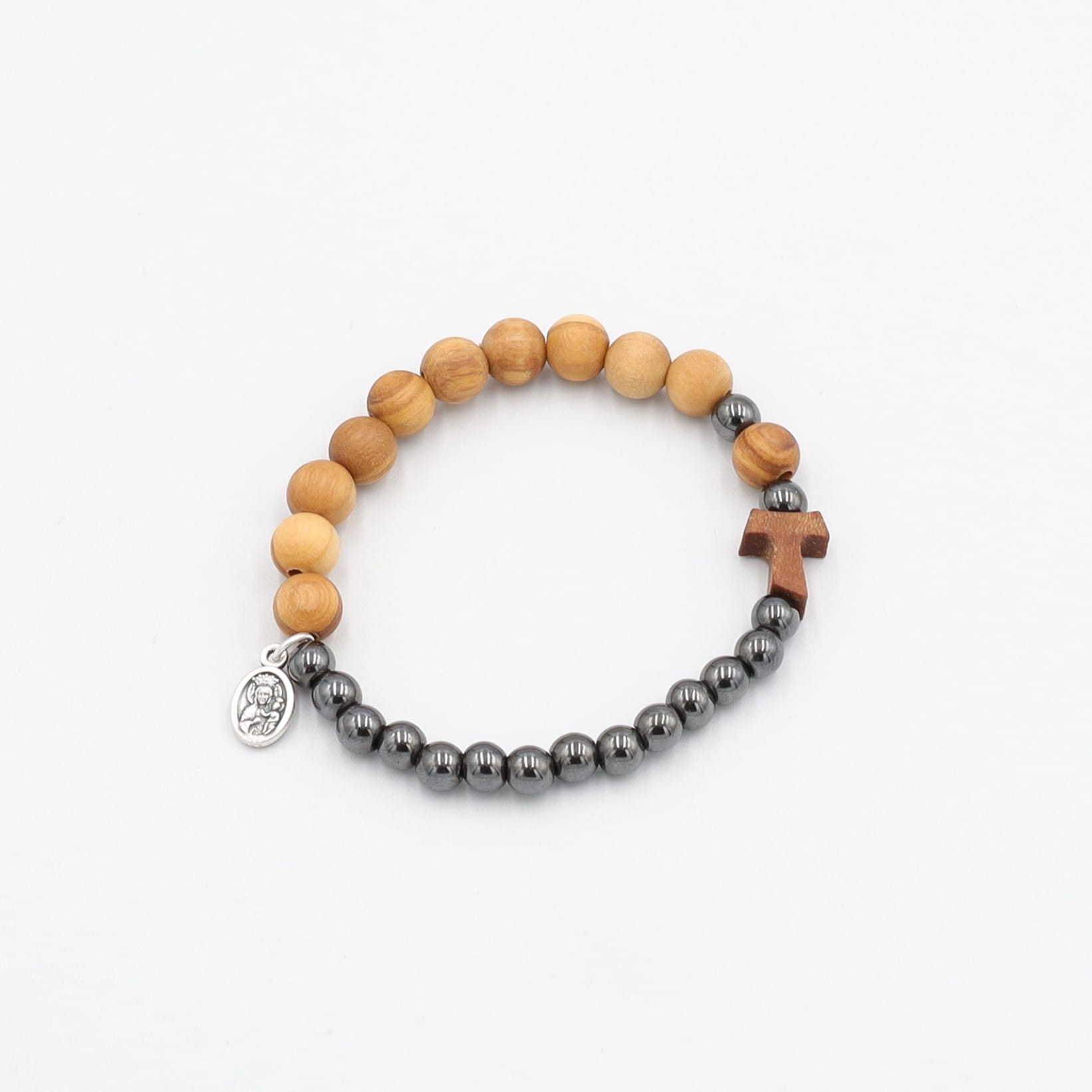Bransoletka drewno oliwne 8 mm - hematyt 6 mm