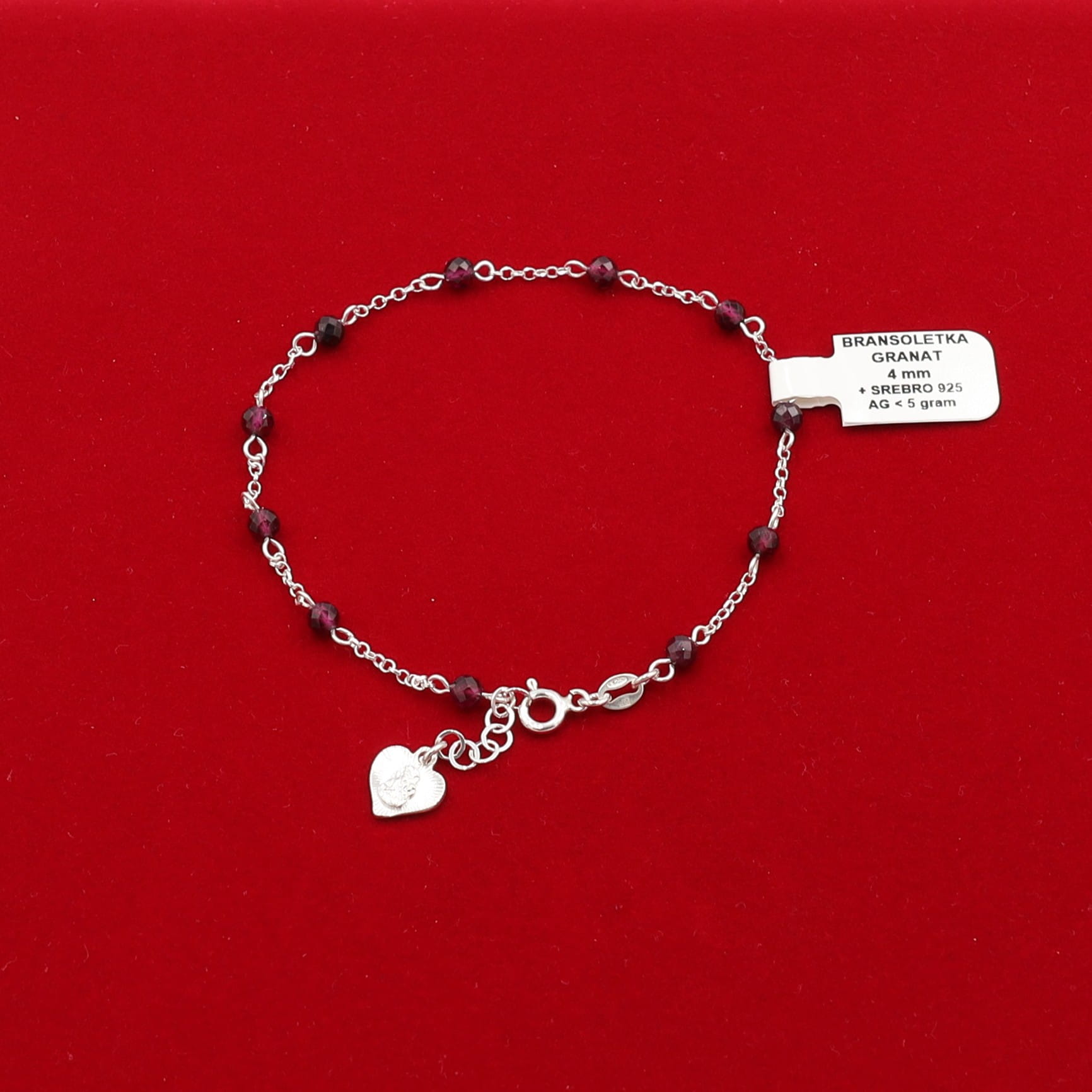 Bransoletka granat 4 mm + Ag 925