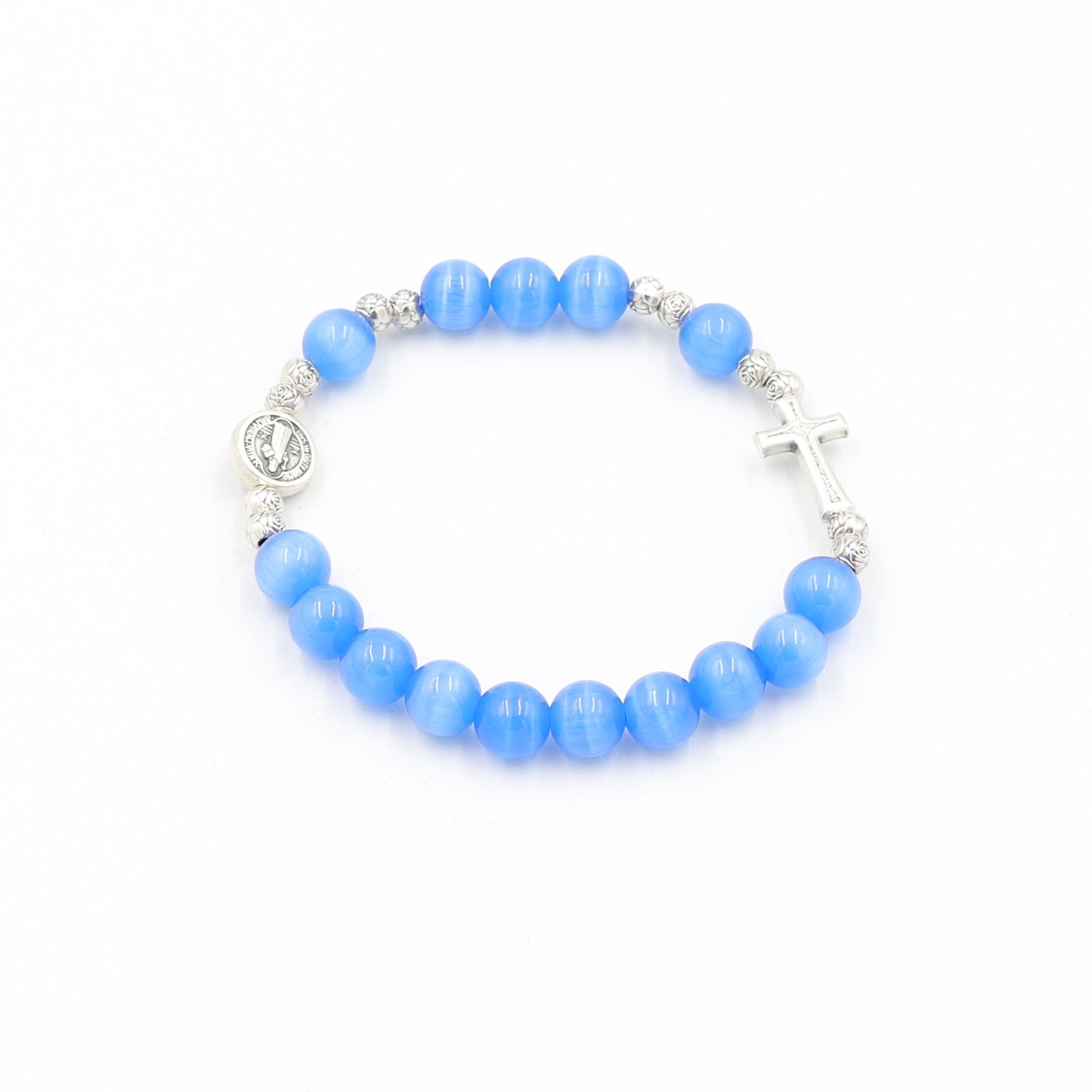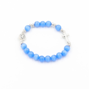 Bransoletka kocie oko aqua 8 mm - przekładka Św.Benedykt (1-3-1)