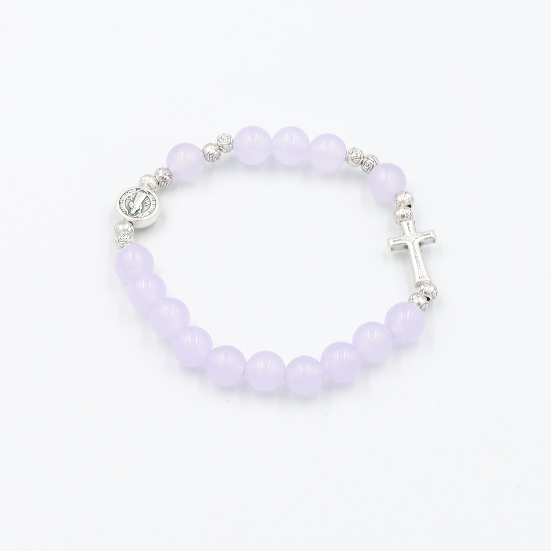Bransoletka marmurek fuksjowy 8 mm - przekładka Św.Benedykt (1-3-1)