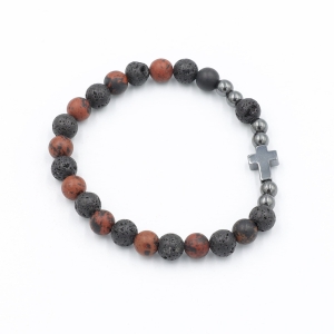 Bransoletka męska obsydian brązowy + lawa wulkaniczna 8 mm