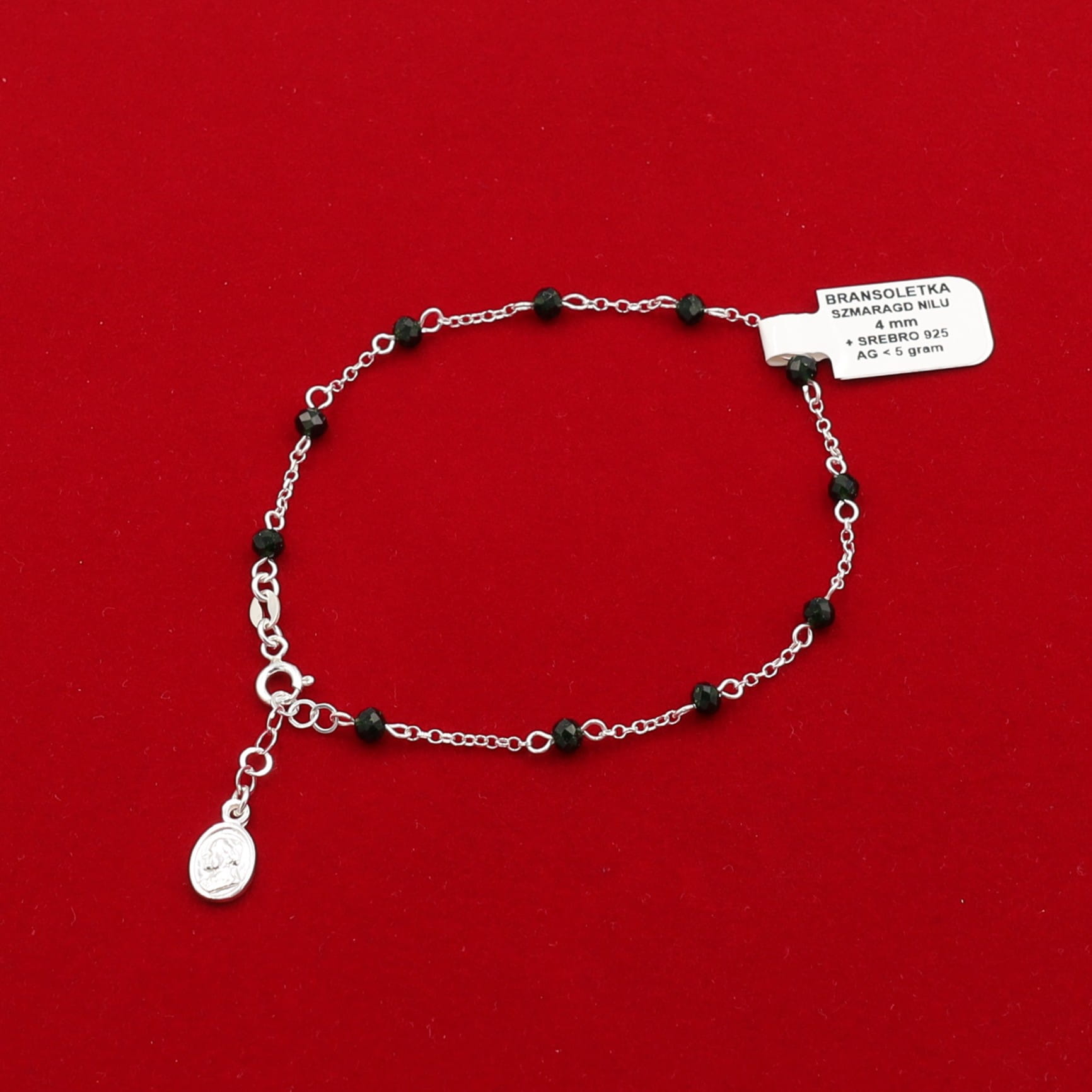 Bransoletka szmaragd nilu 4 mm + Ag 925