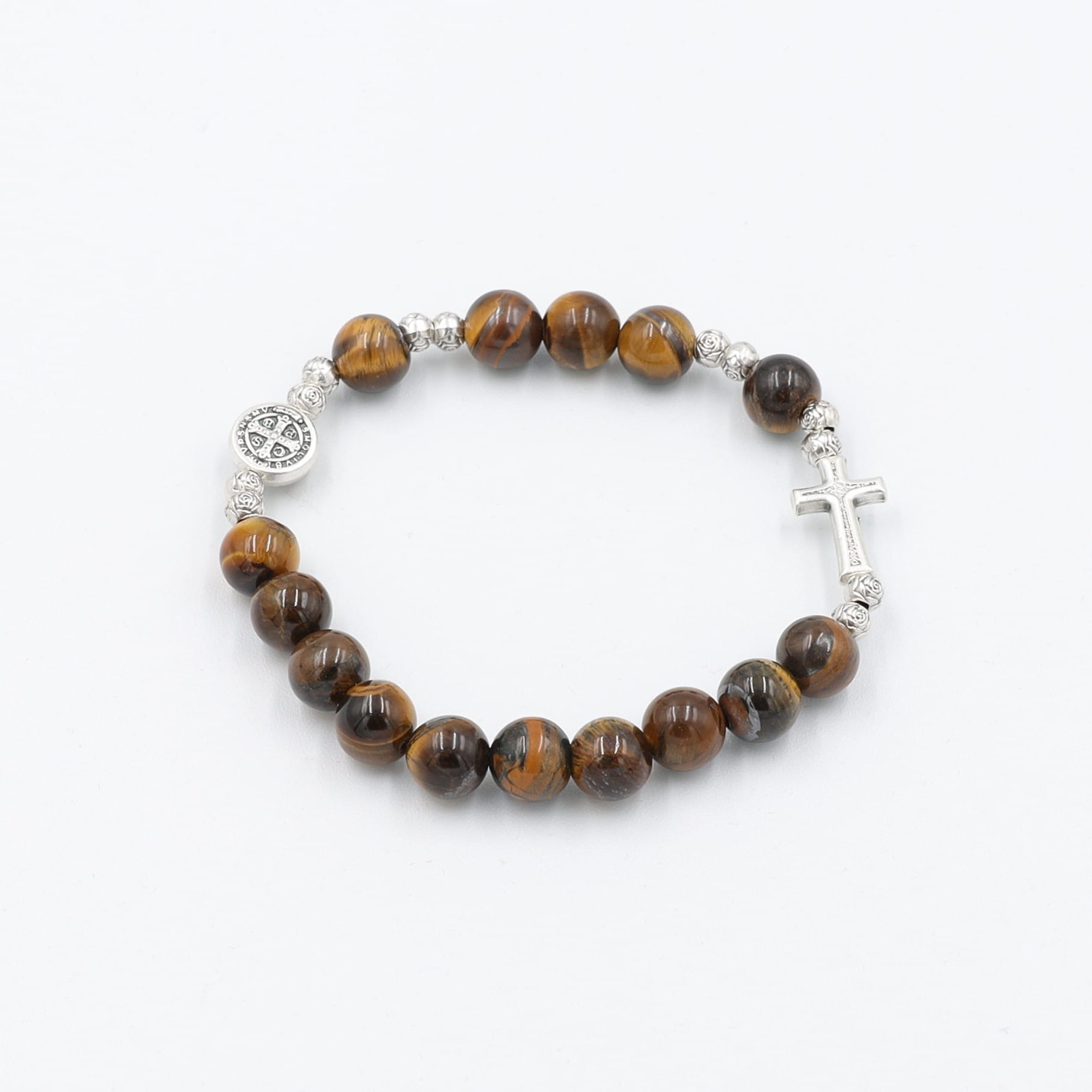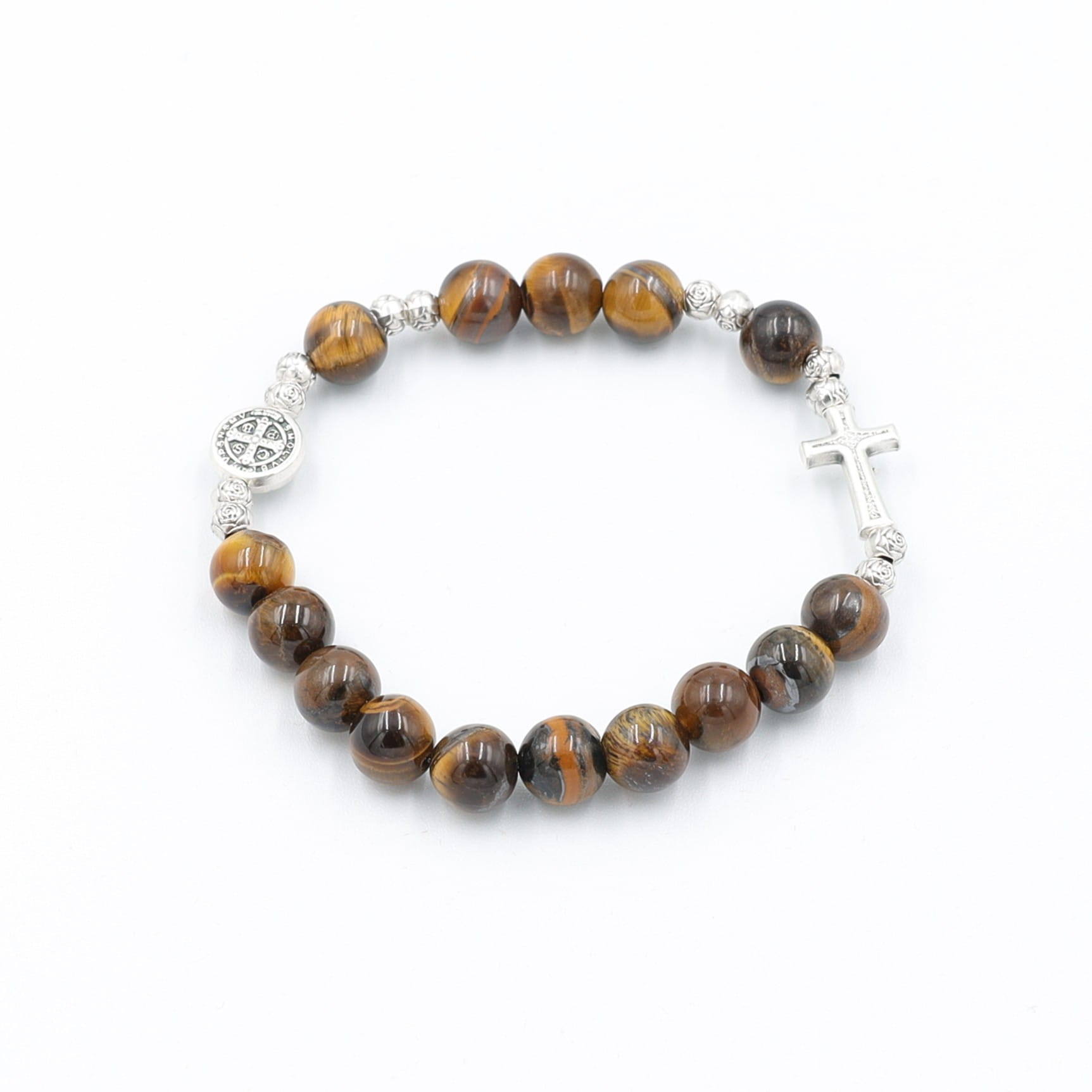 Bransoletka tygrysie oko 8 mm - przekładka Św.Benedykt (1-3-1)