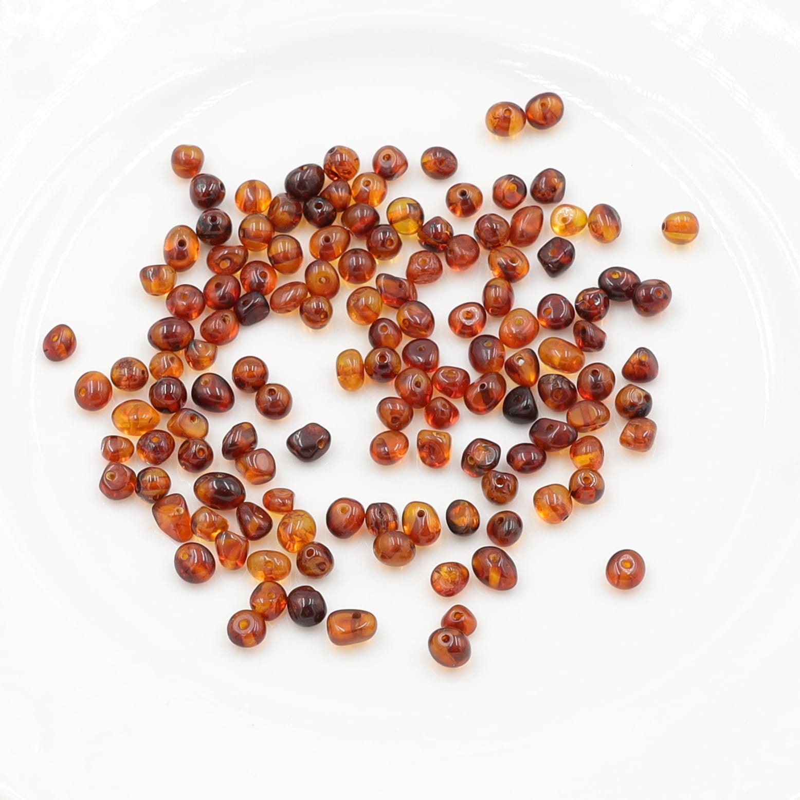Bursztyn naturalny - koraliki 5-6 mm - ciemny koniak