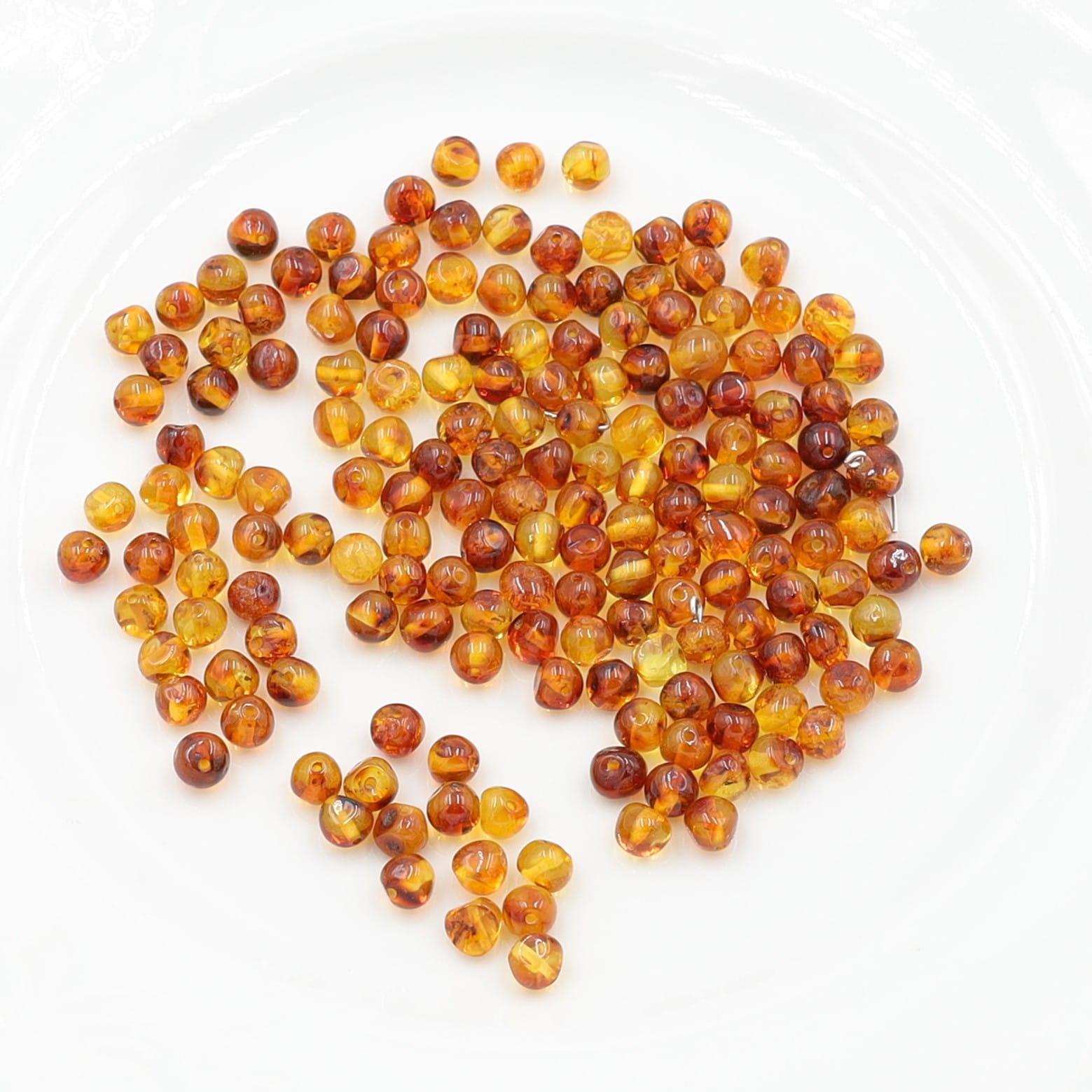 Bursztyn naturalny - koraliki 5-6 mm - jasny koniak
