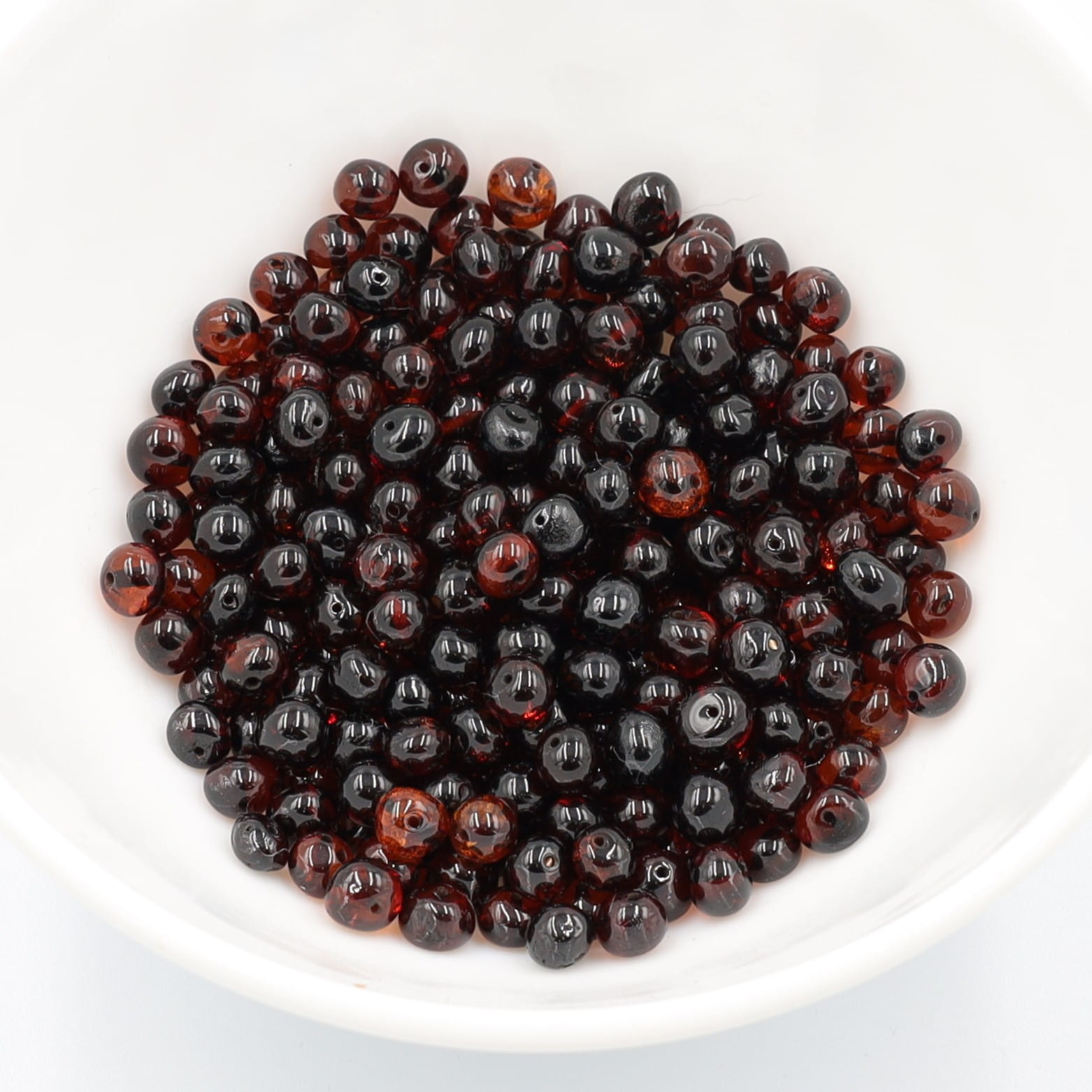 Bursztyn naturalny - koraliki 6-8 mm - ciemny koniak