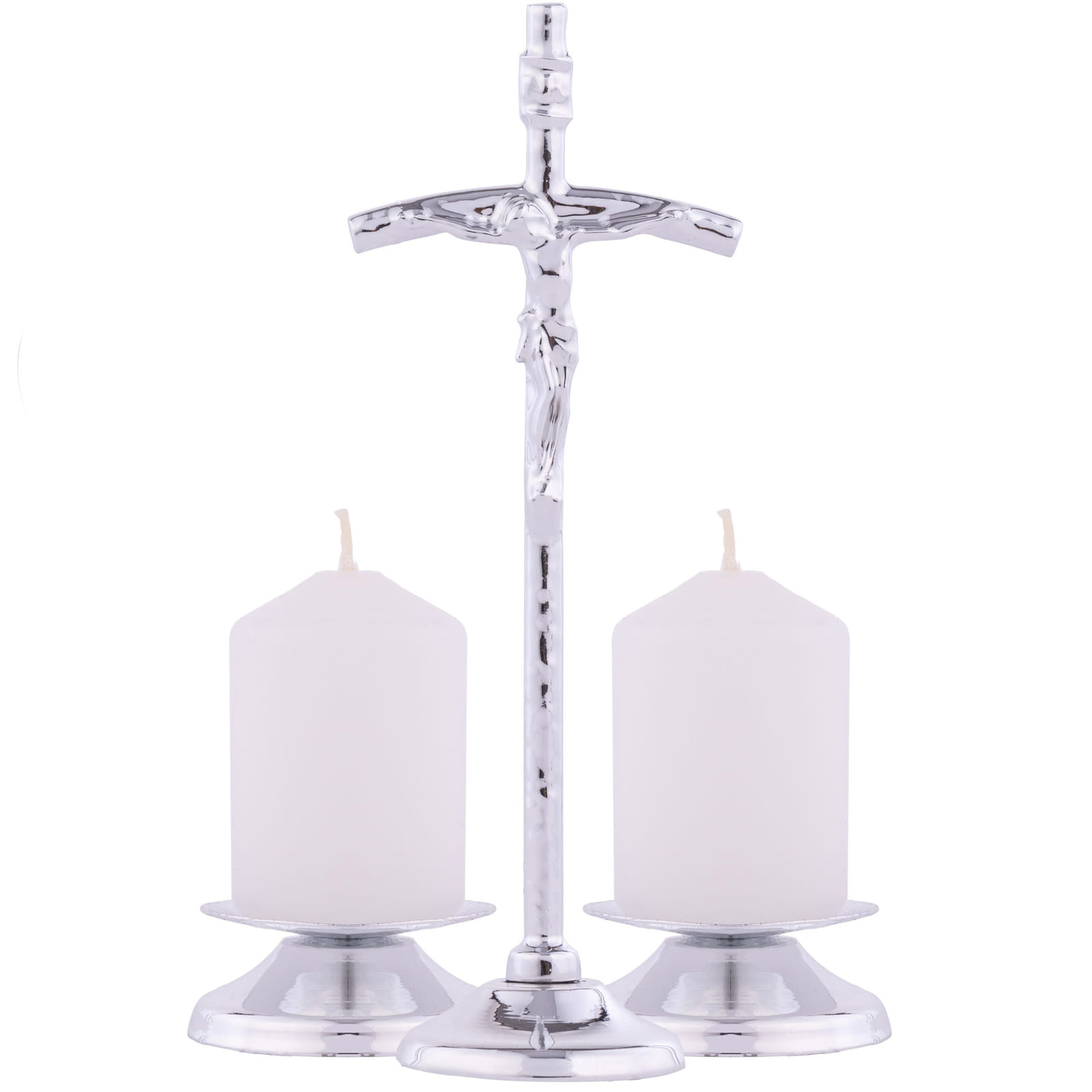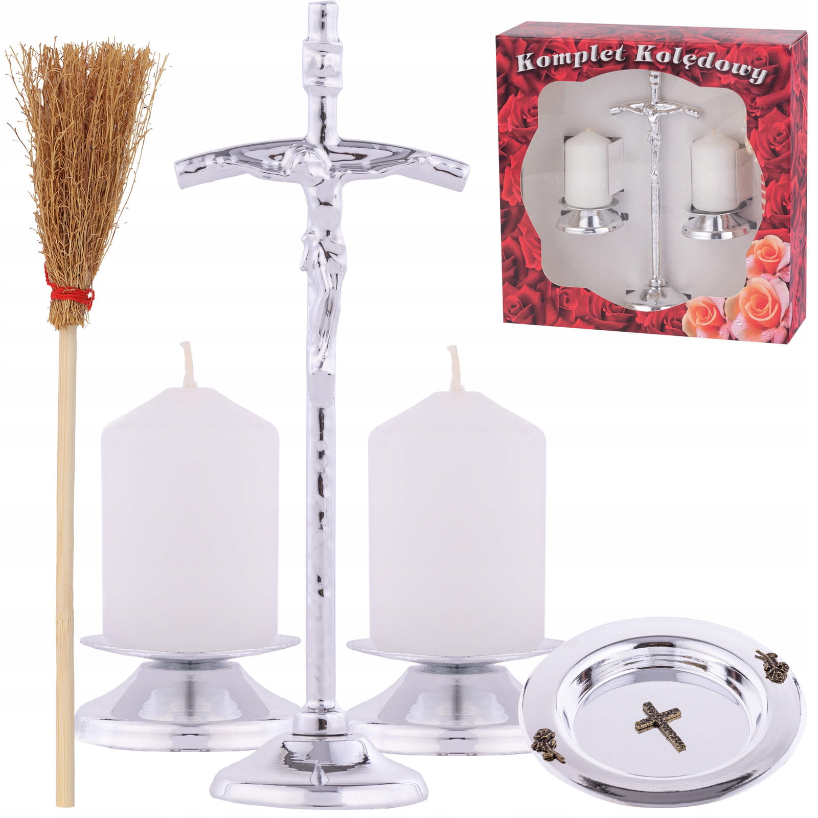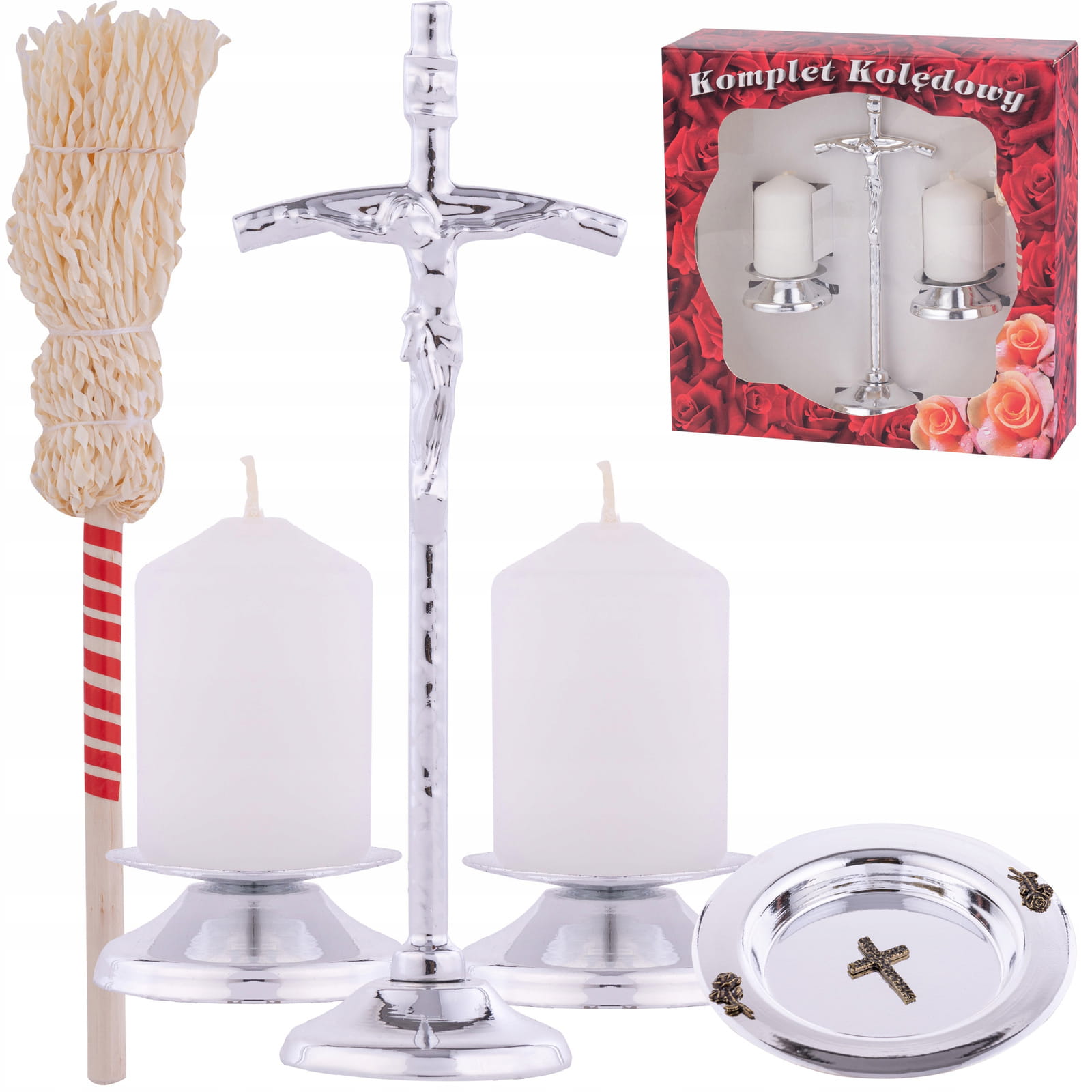 - Dwa świeczniki ze świecami o wysokości 7cm oraz szerokości podstawy 4,5cm