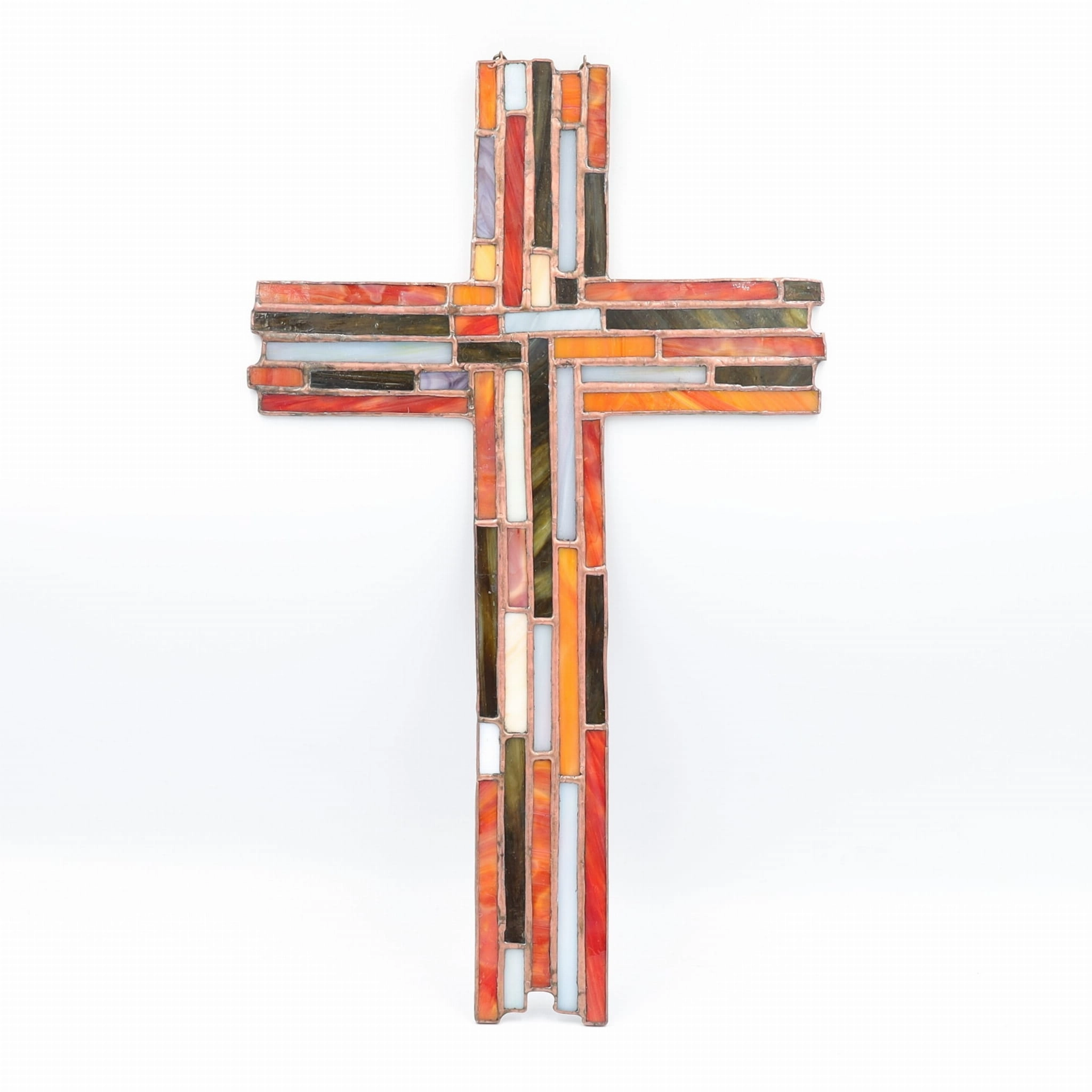- Krzyż wykonany ręcznie z miedzi oraz szkła witrażowego.