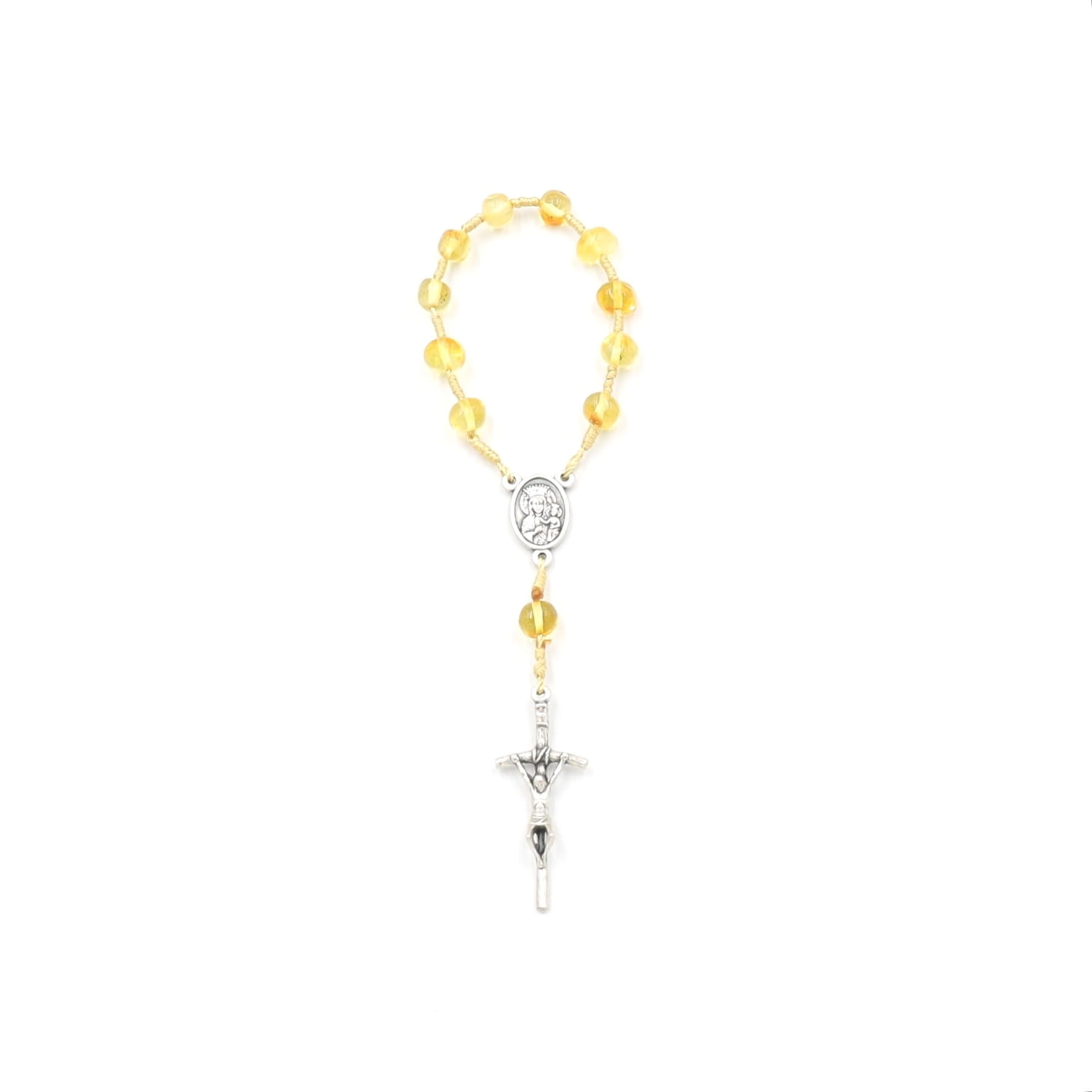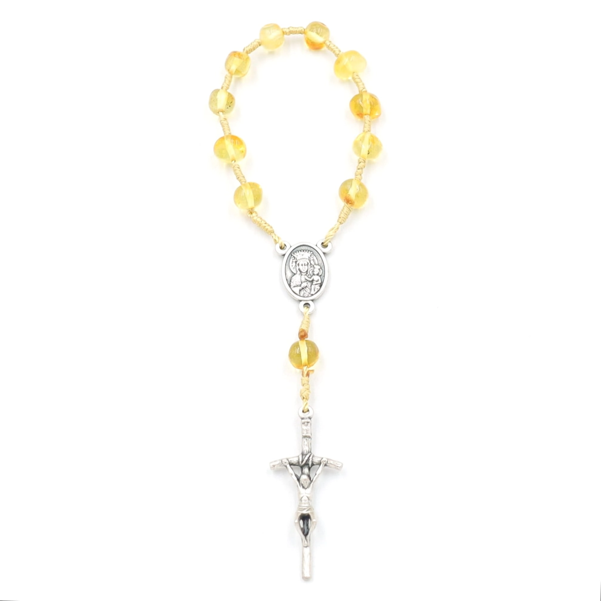 Różaniec "10" z bursztynu naturalnego na sznurku - cytryna