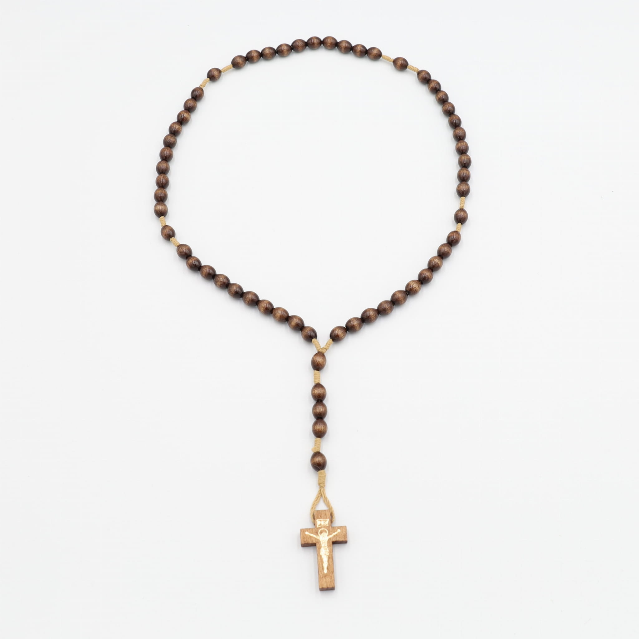 Różaniec drewniany na sznurku - brązowy