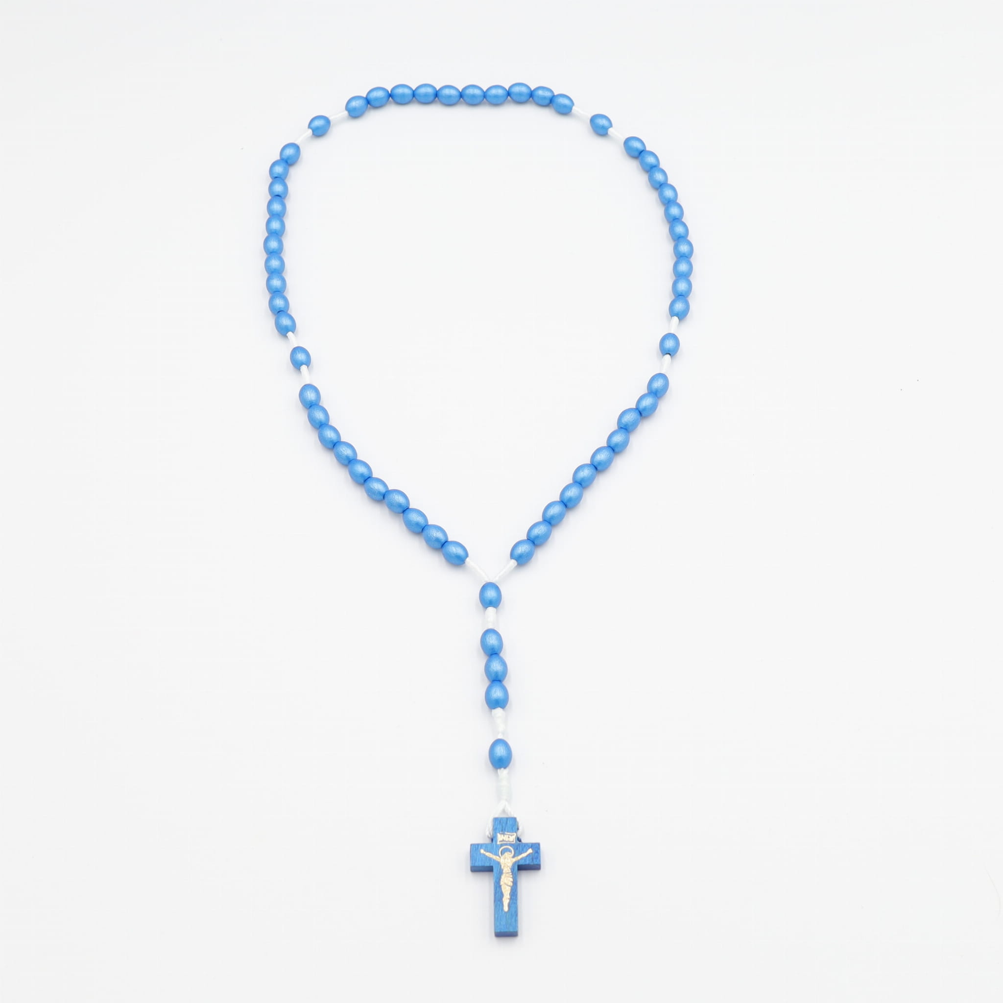 Różaniec drewniany na sznurku - niebieski perłowy