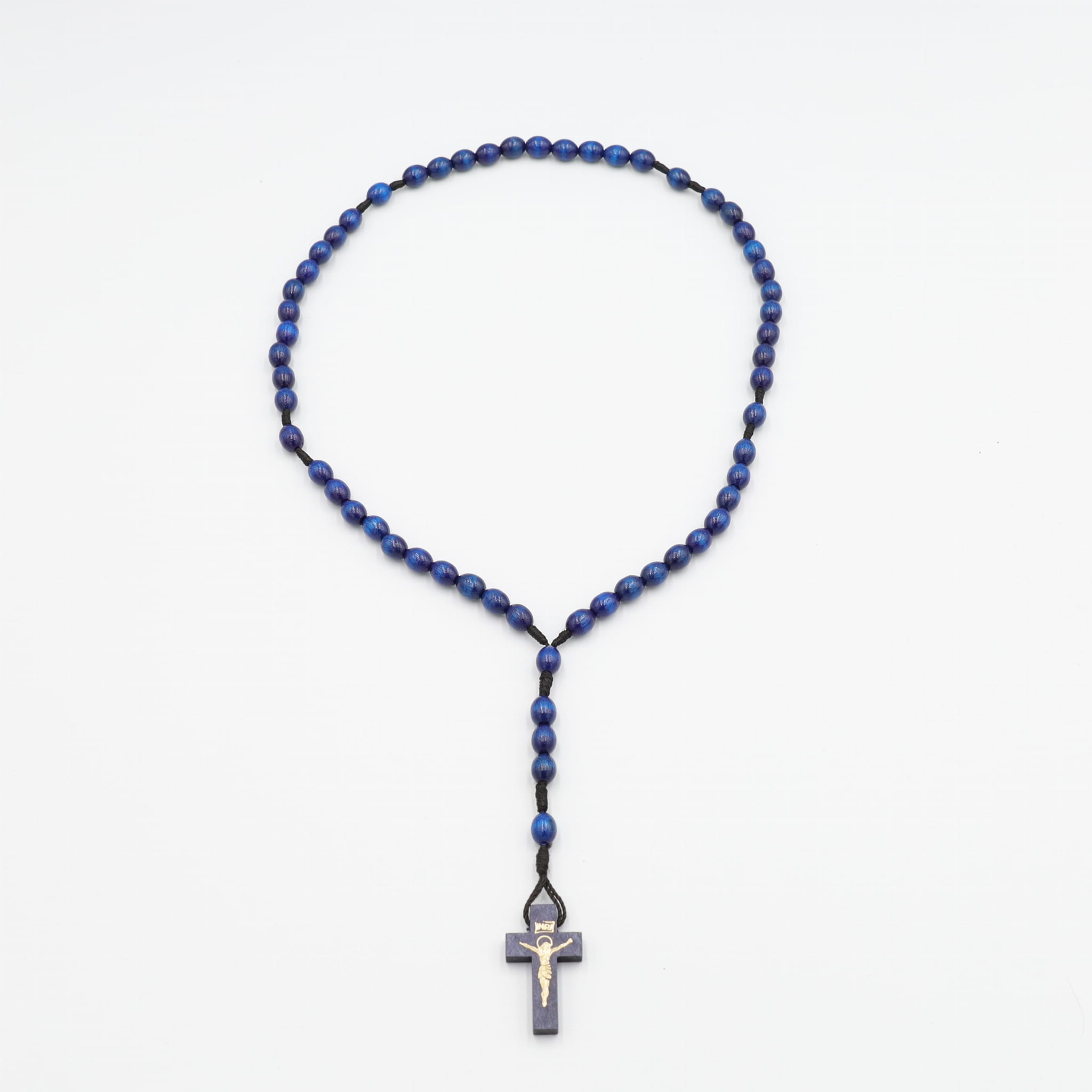 Różaniec drewniany na sznurku - szafirowy