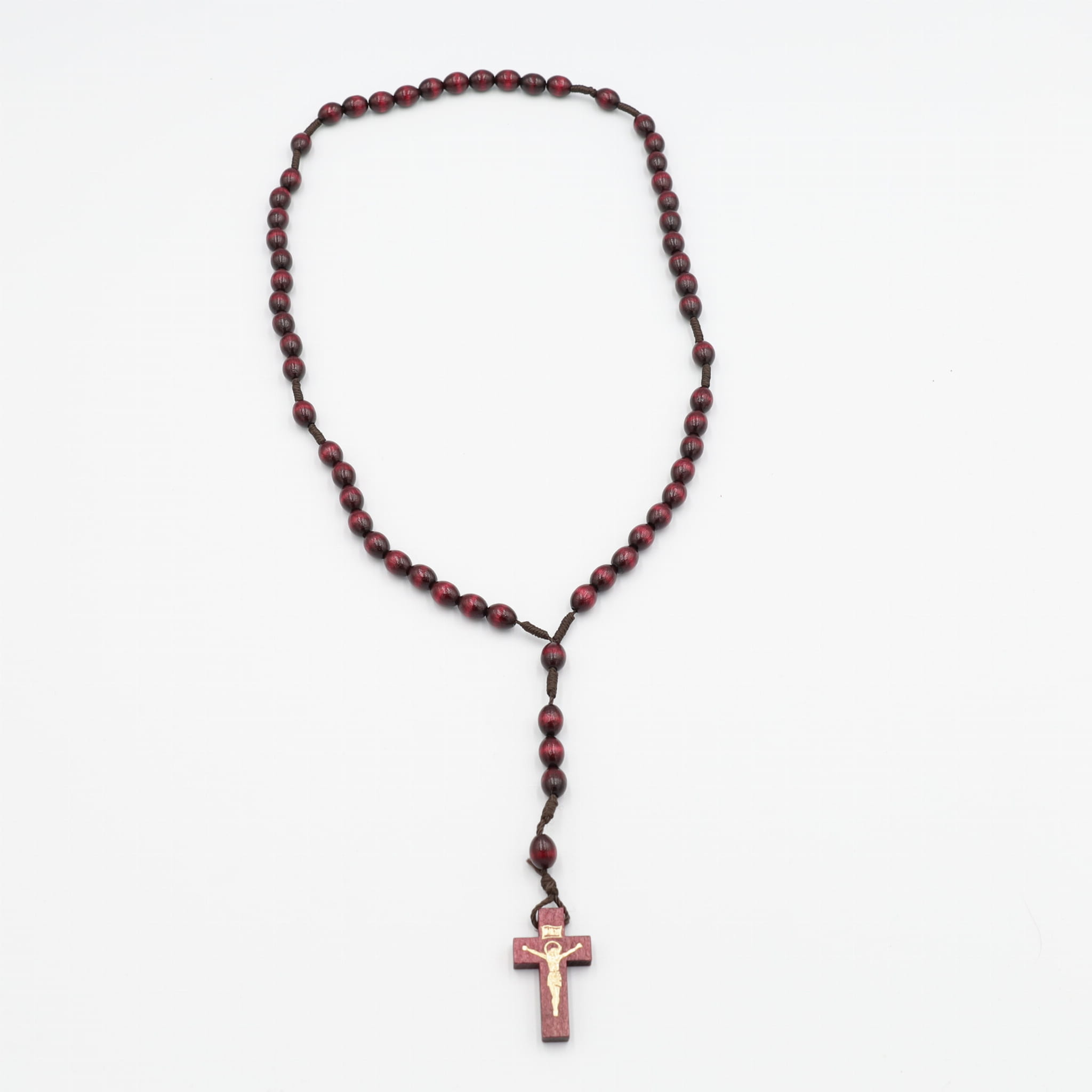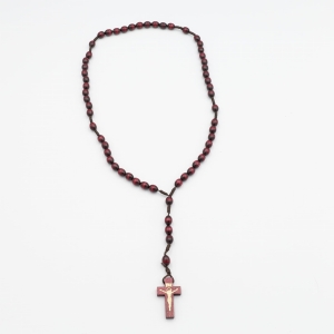 Różaniec drewniany na sznurku - wiśniowy