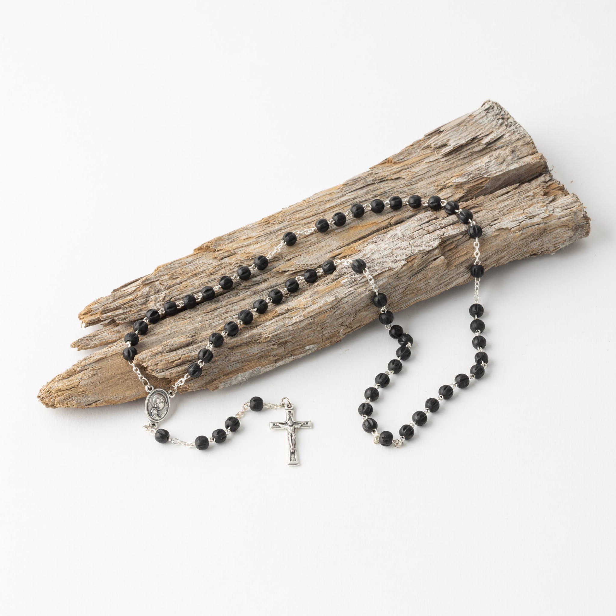 Różaniec drewniany nacinany 6 mm - kolor czarmy