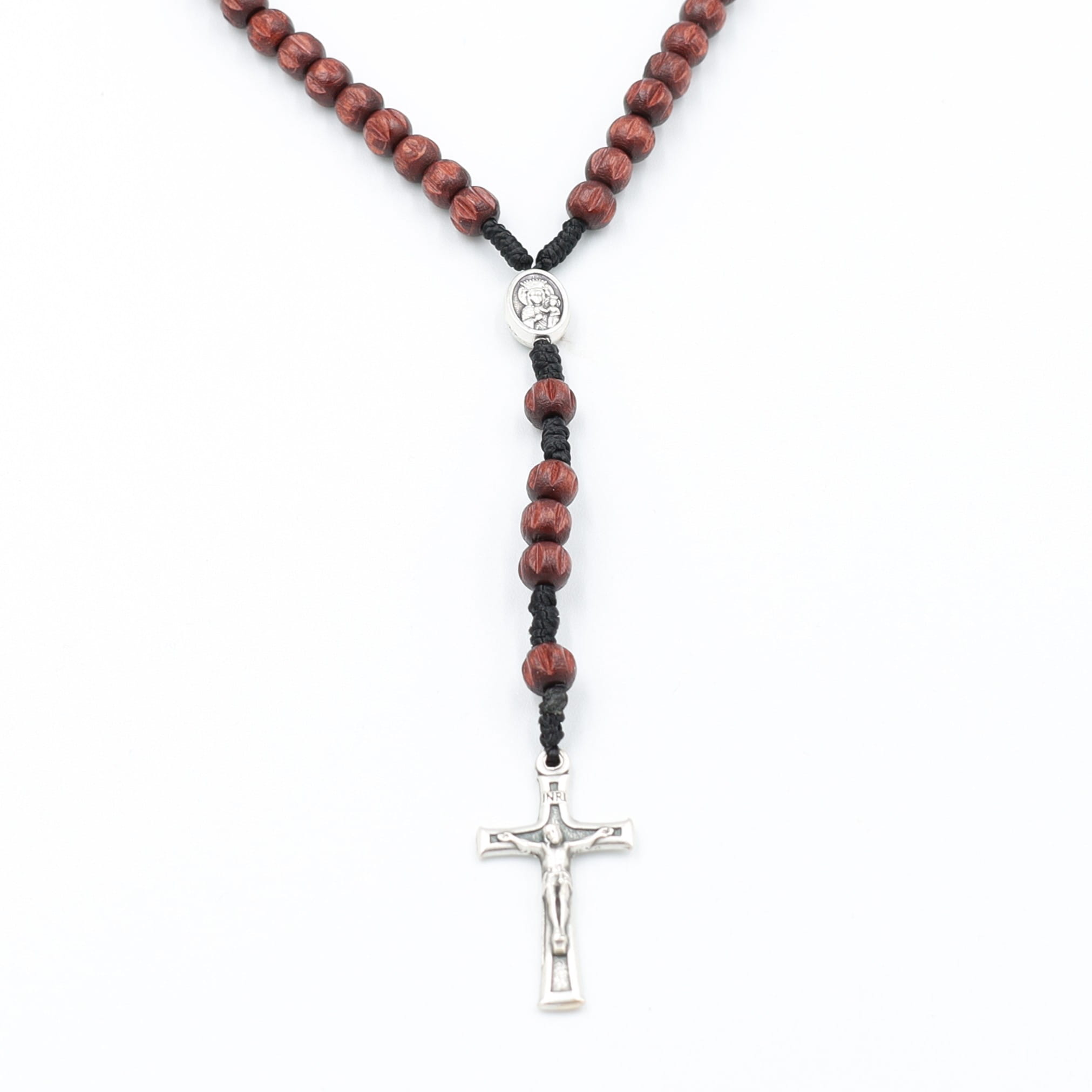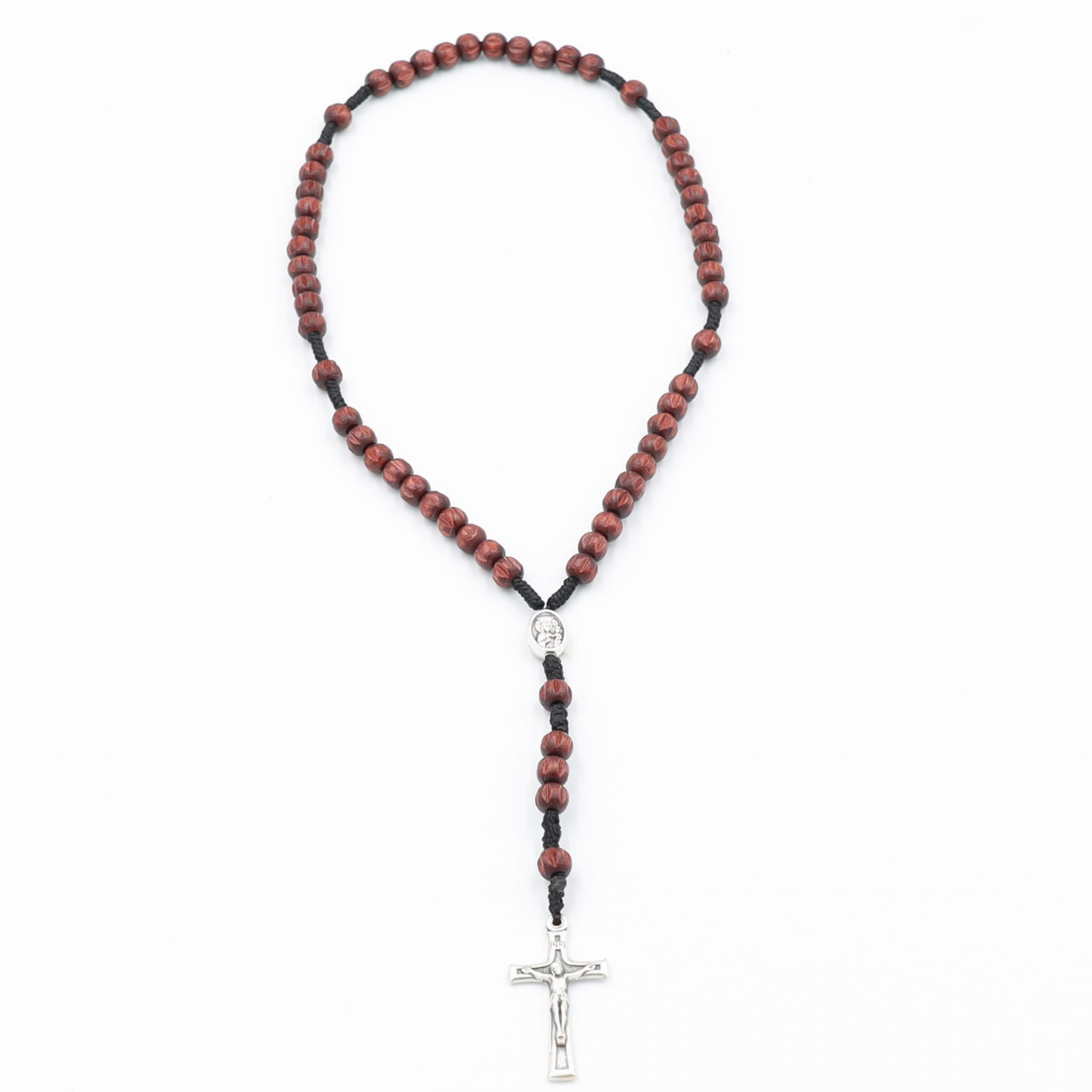 Różaniec drewniany nacinany 6 mm na sznurku - kolor wiśniowy