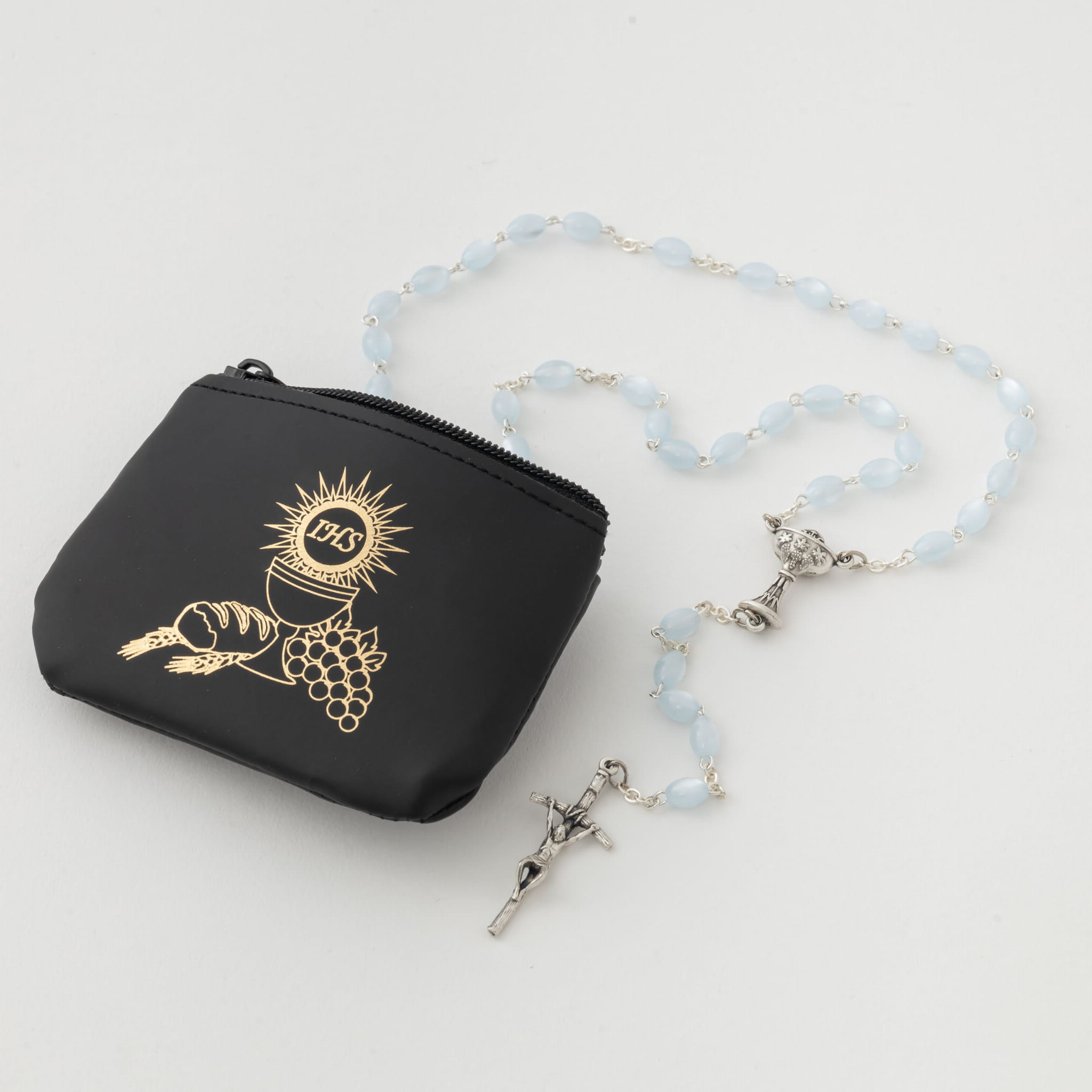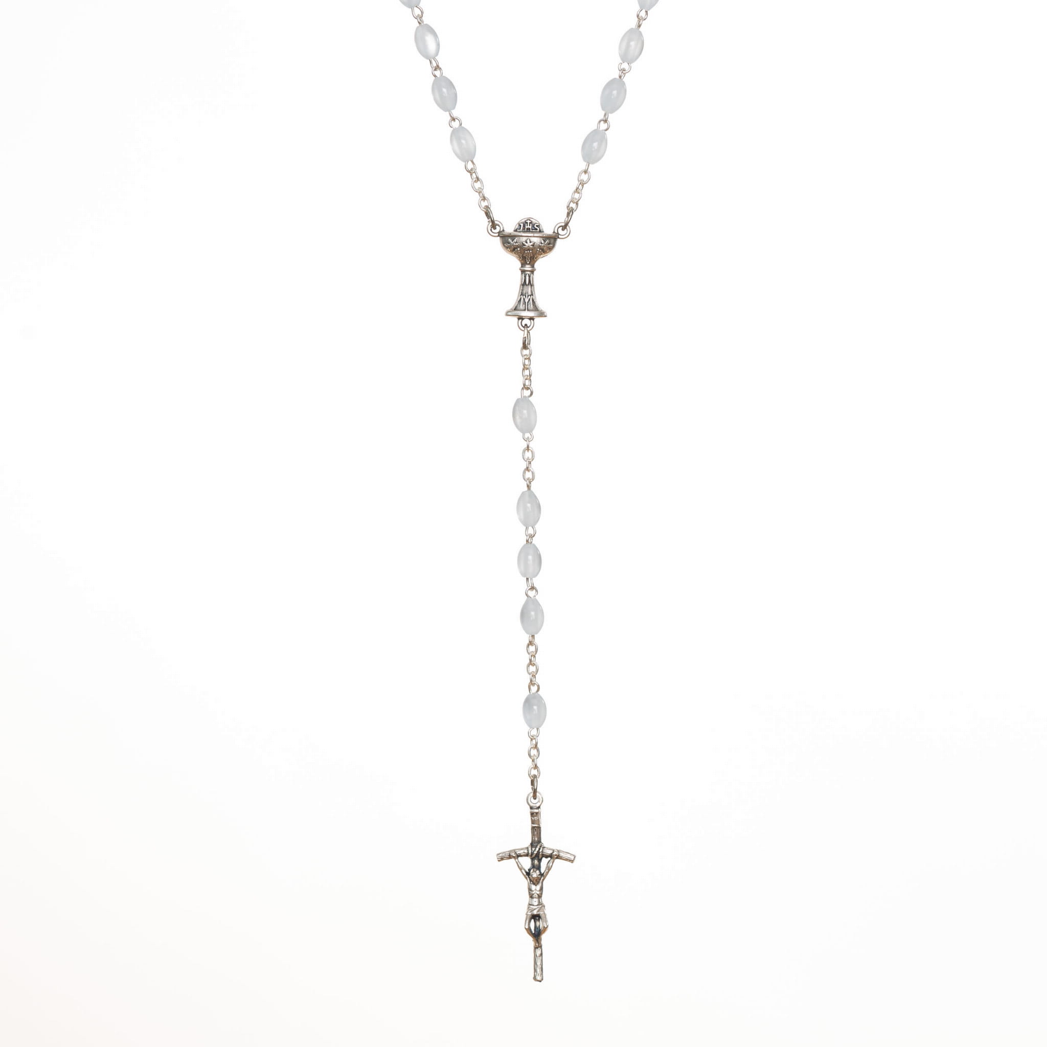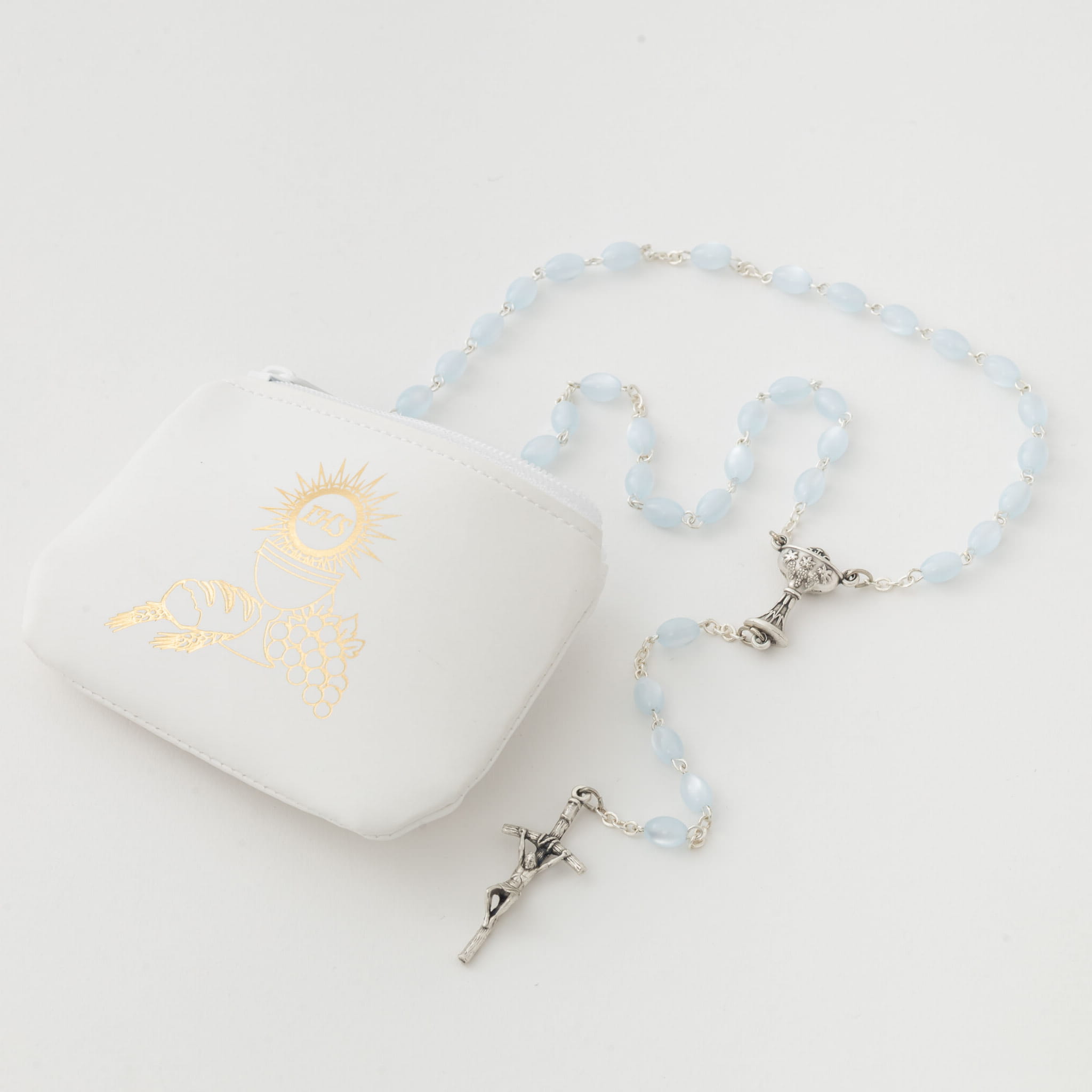 Różaniec madre perla oval niebieska