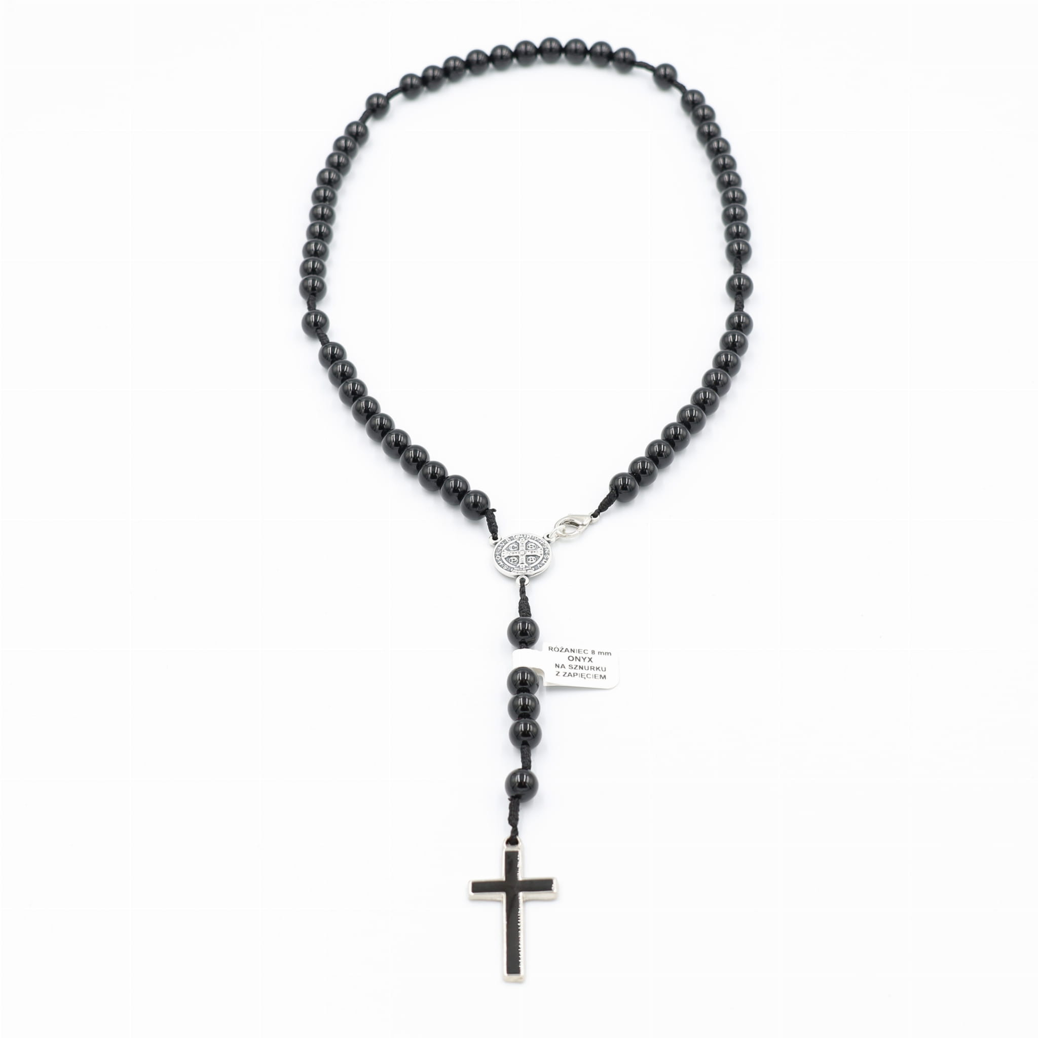 Różaniec onyx 8 mm na sznurku z zapięciem