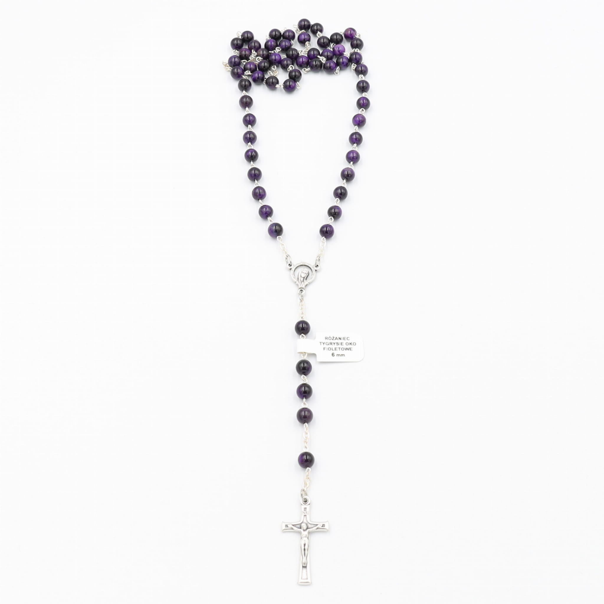 Różaniec tygrysie oko fioletowe 6 mm