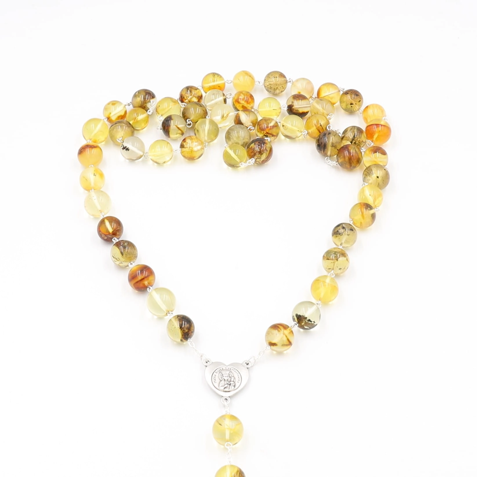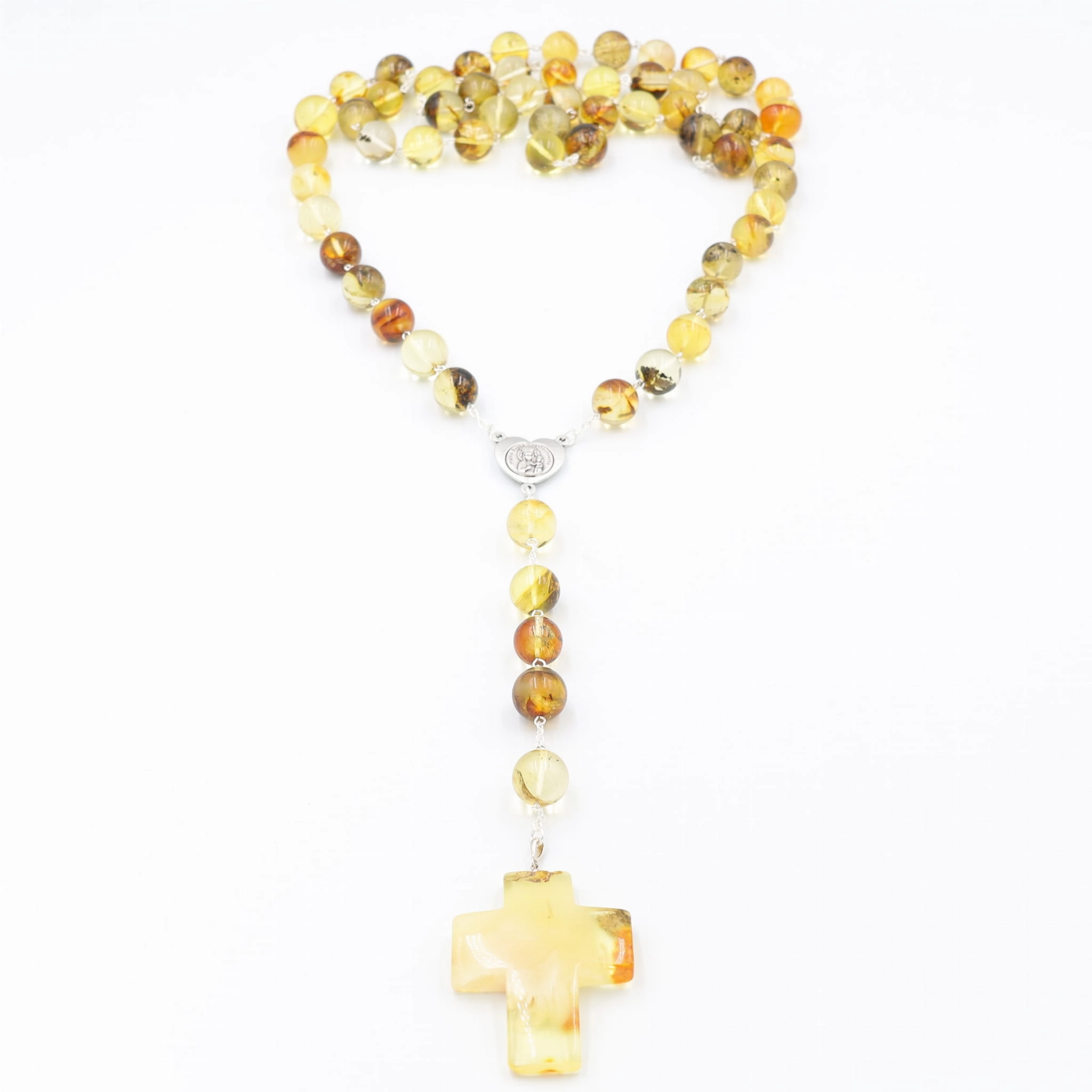 - Duży różaniec wykonany ręcznie z bursztynu naturalnego