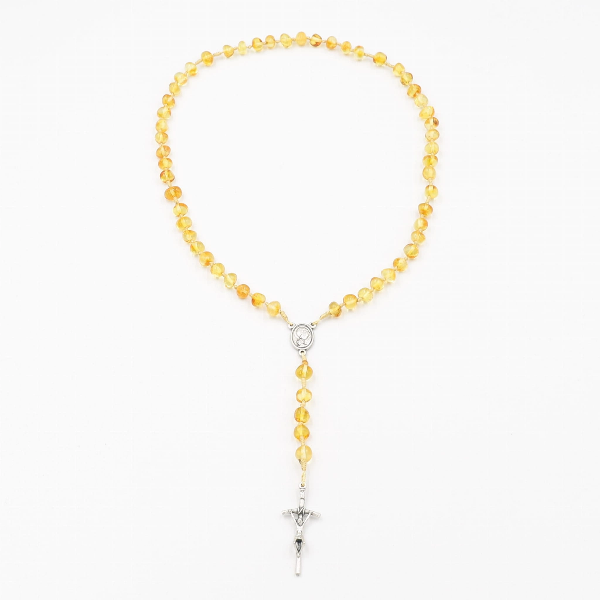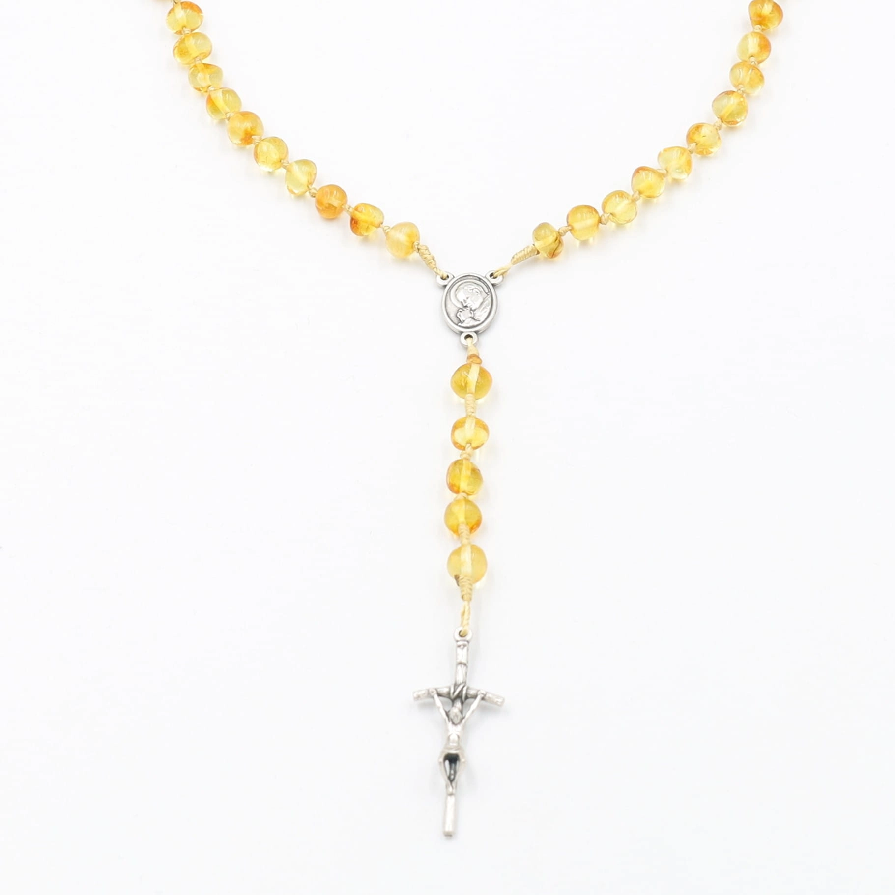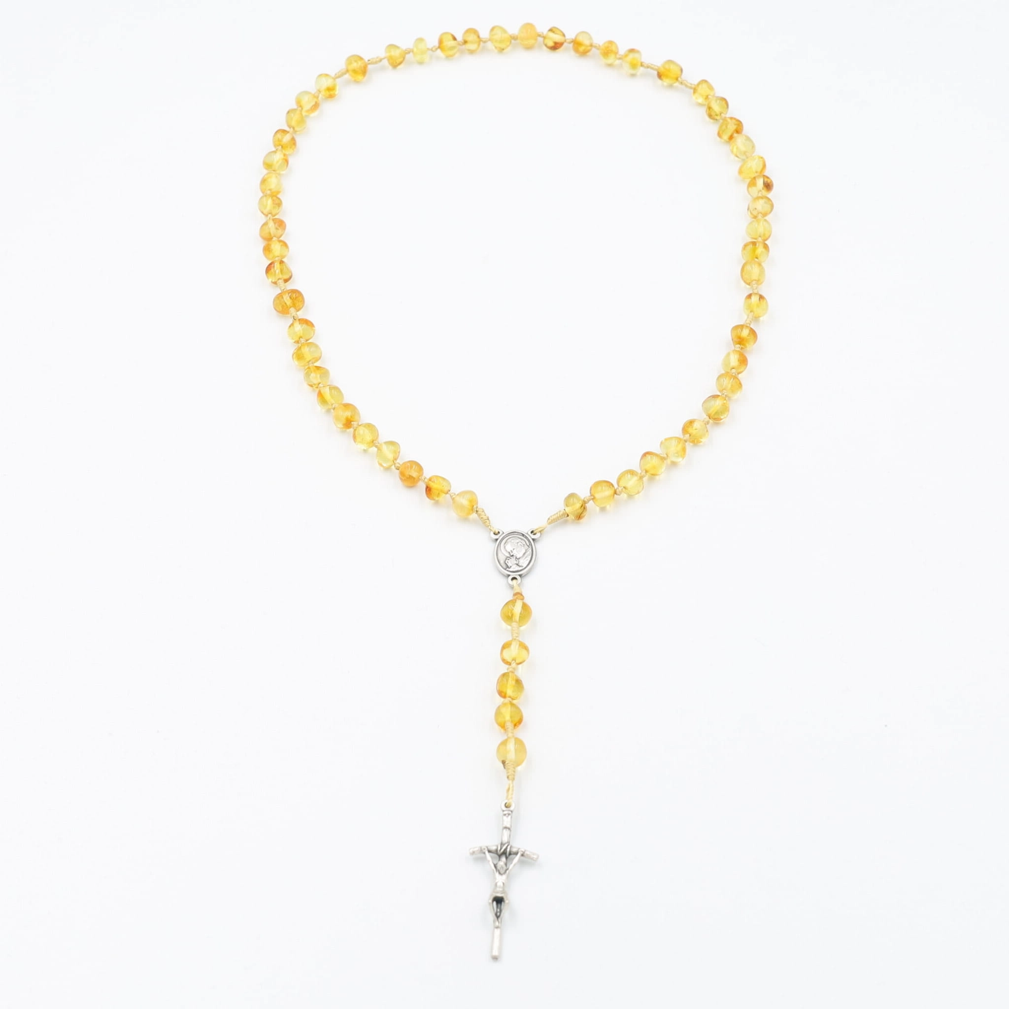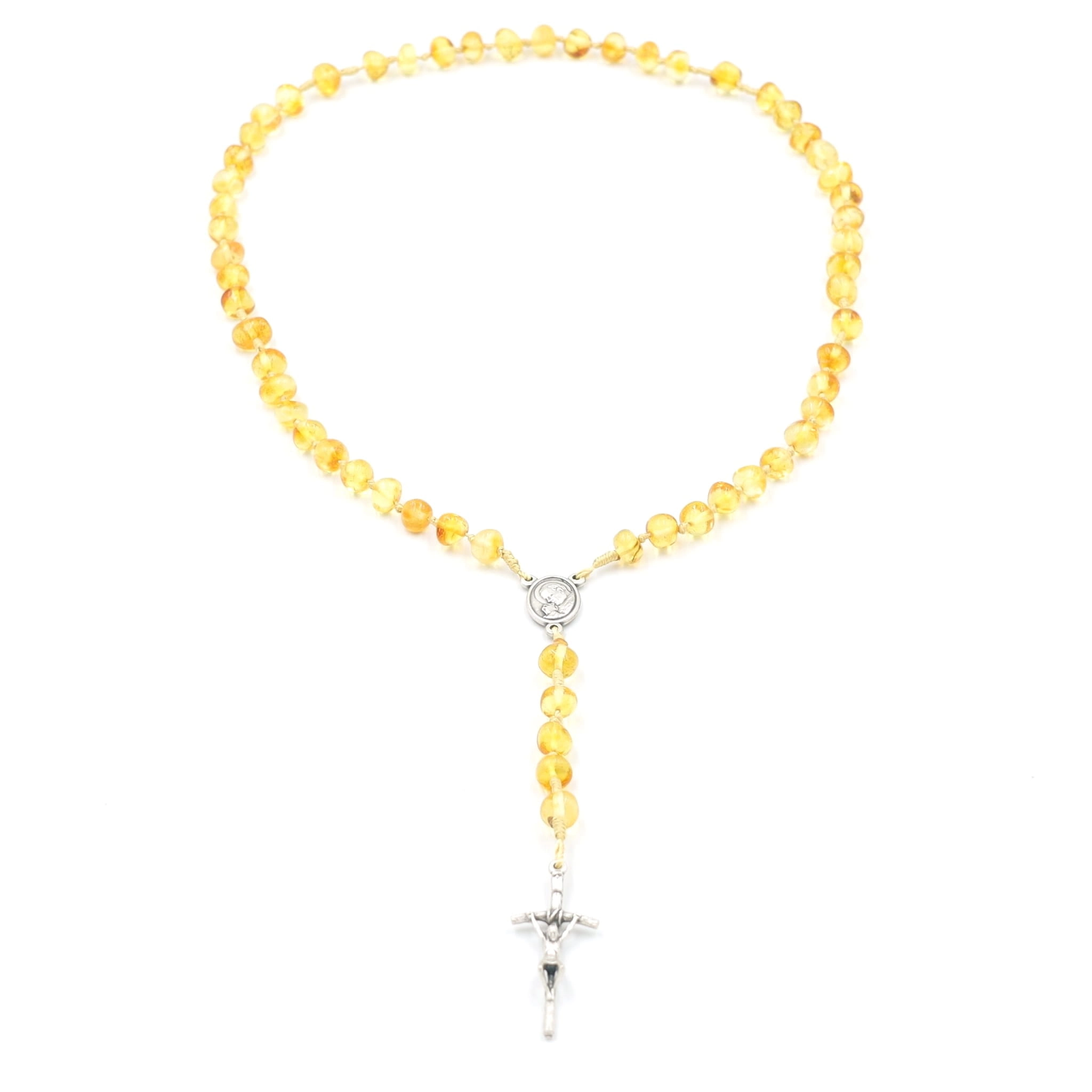 Różaniec z bursztynu naturalnego na sznurku - miodowy