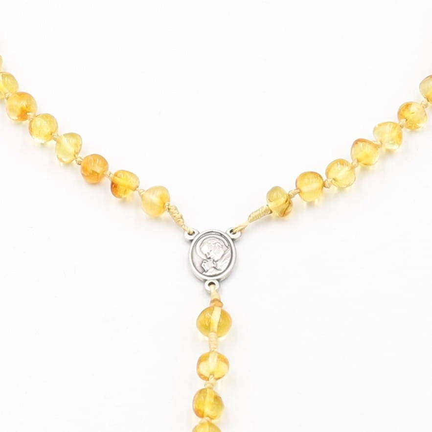 - Różaniec z bursztynu naturalnego - kolor miodowy