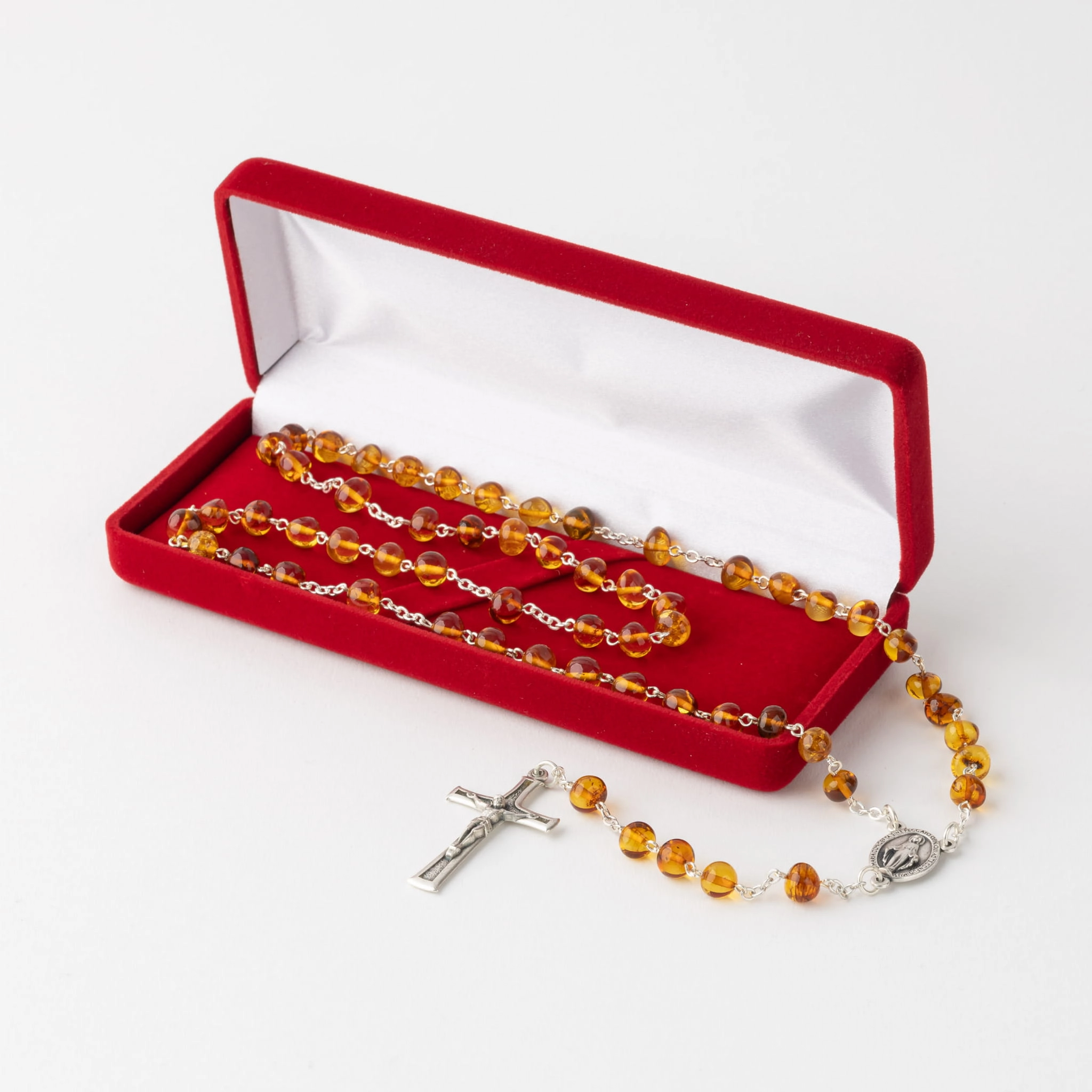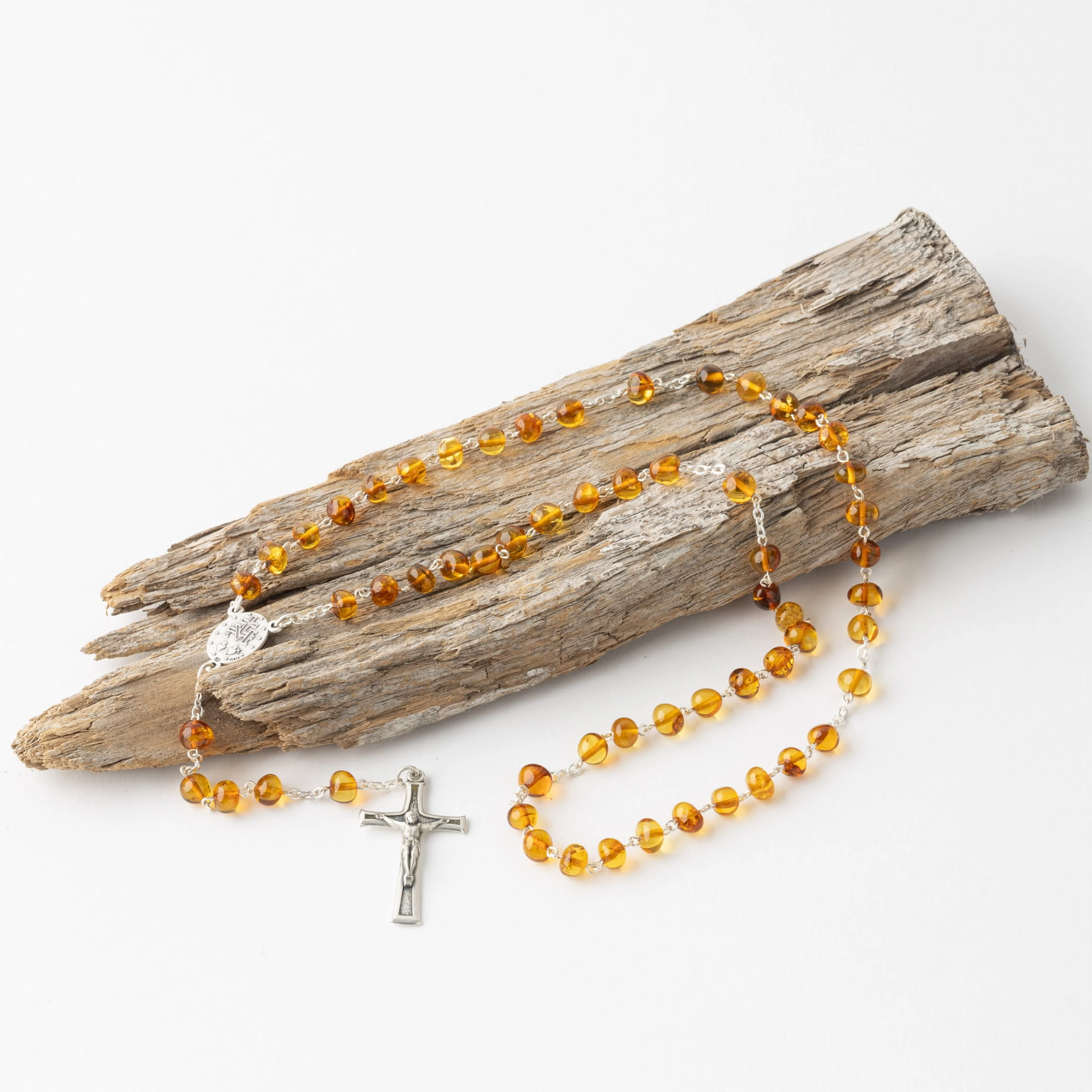- Różaniec wykonany z bursztynu naturalnego na sztyftach