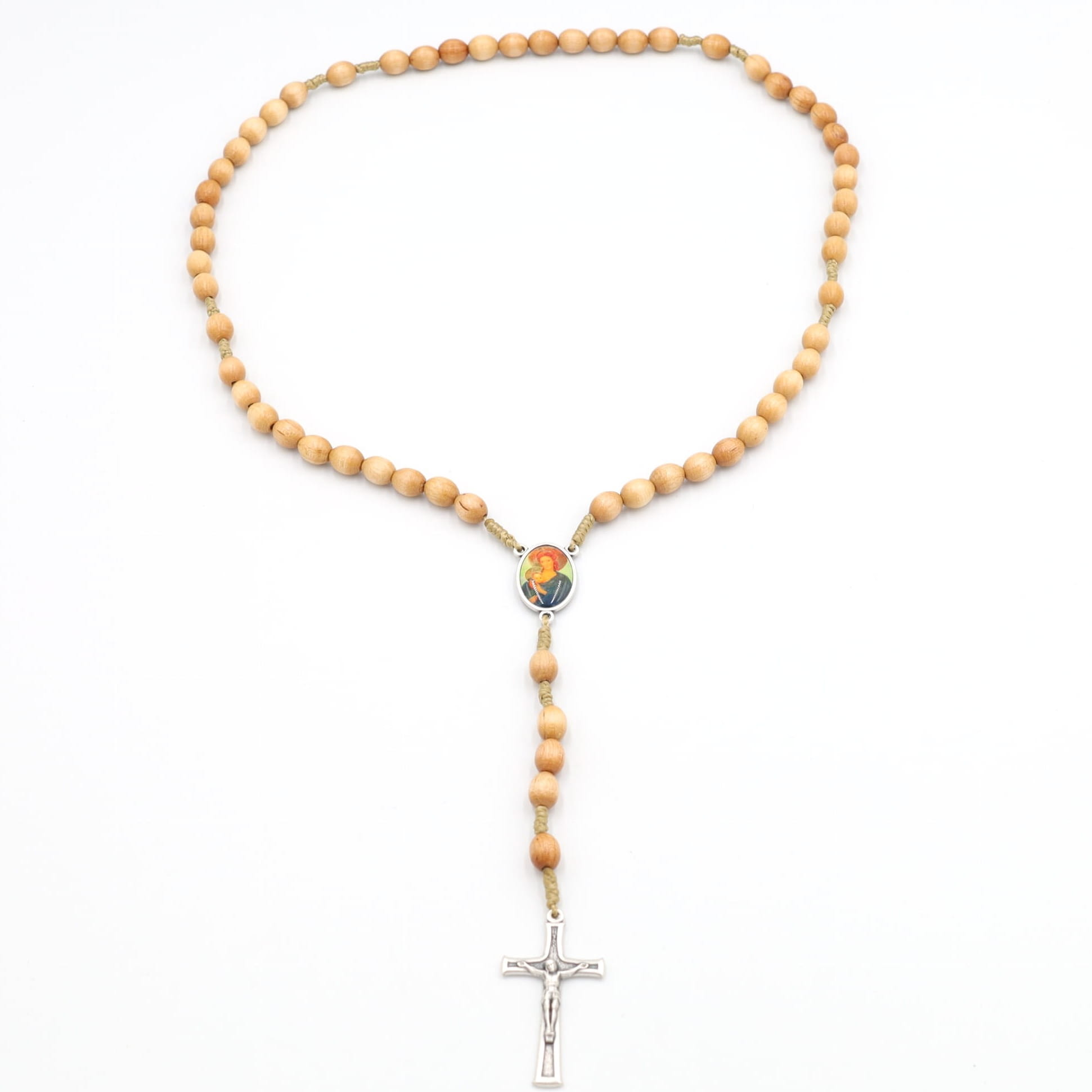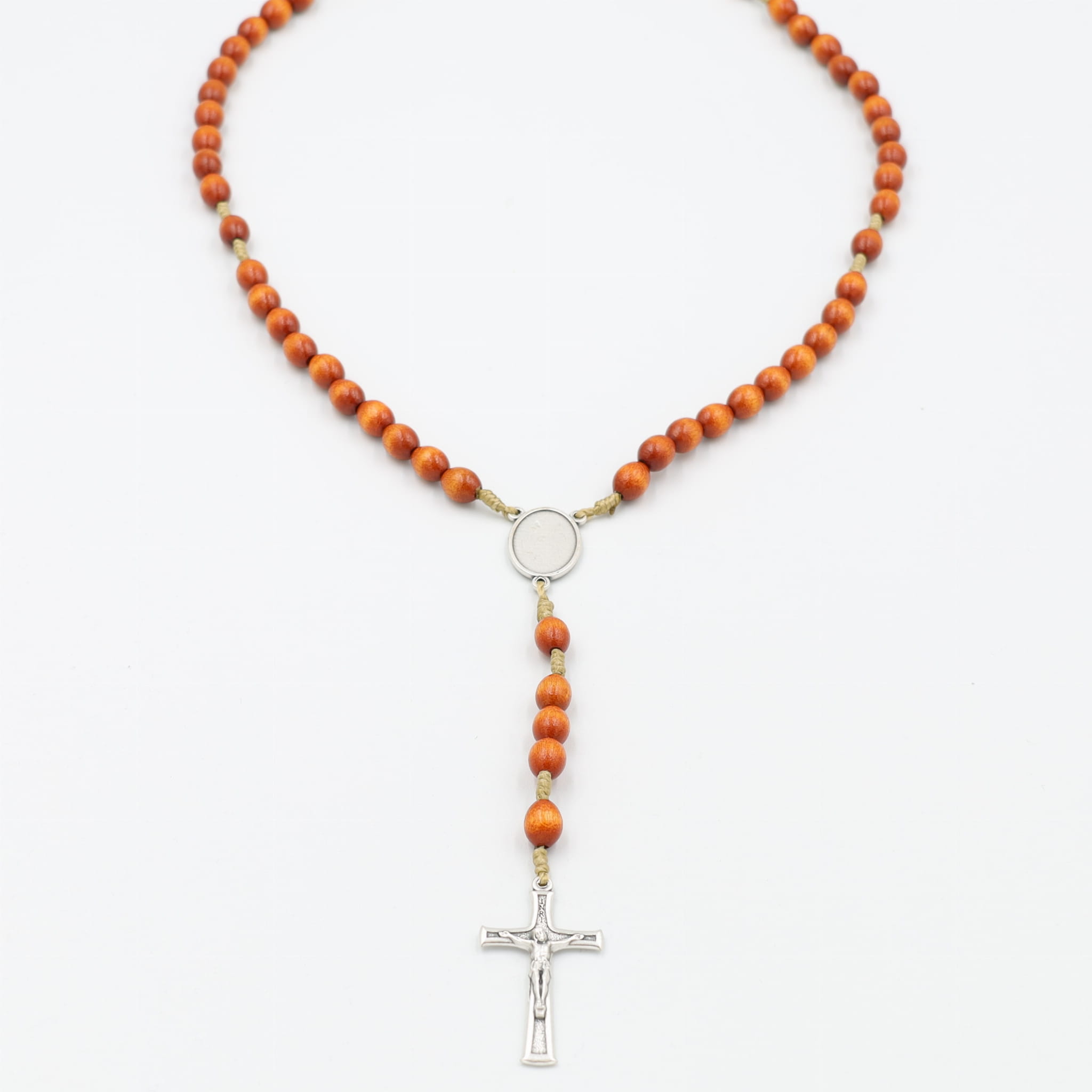 Różaniec z drewna 9/7 mm na sznurku - dowolna naklejka