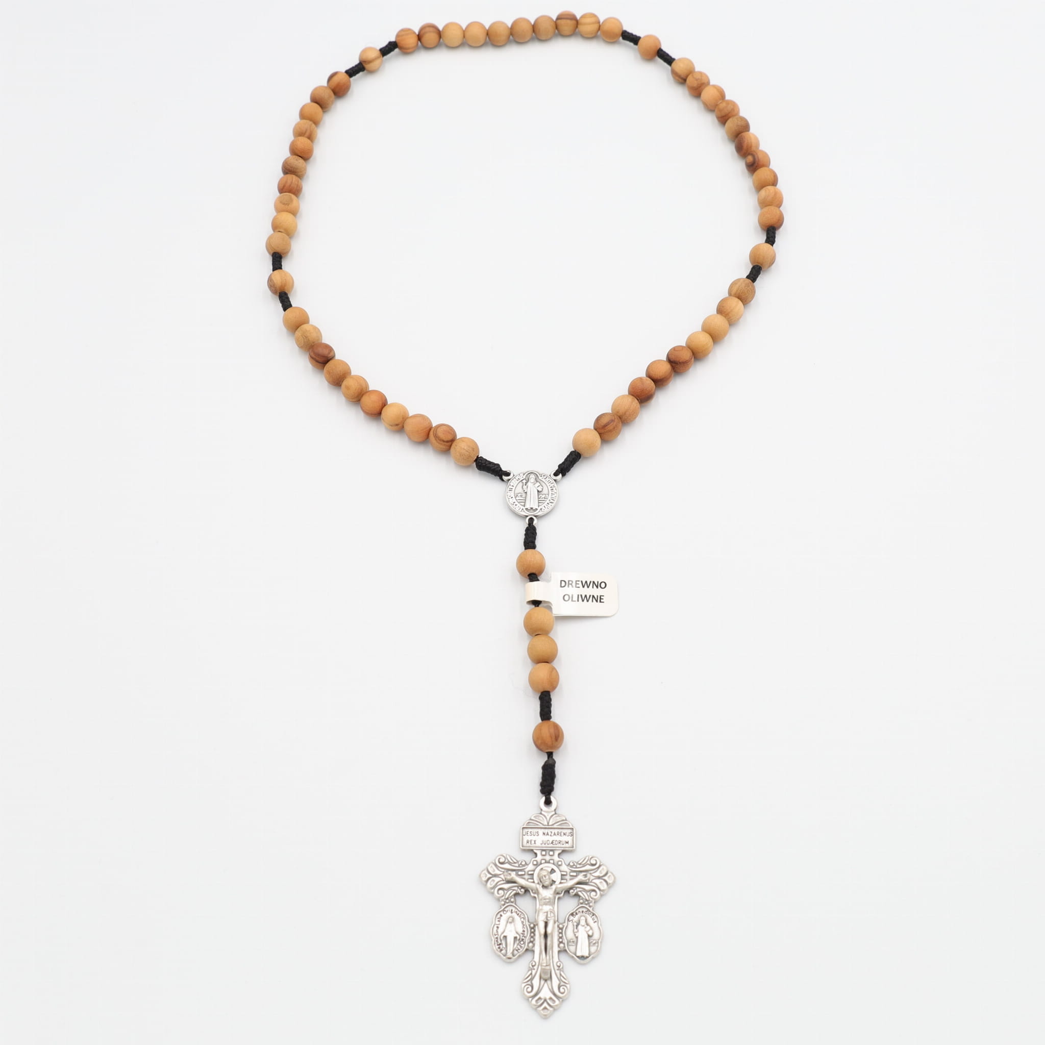 Różaniec z drewna oliwnego 8 mm na sznurku - Krzyż przebaczenia