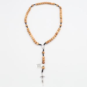 Różaniec z drewna oliwnego 8 mm na sznurku - łącznik JPII/MBCz - krzyż papieski 3.8 cm