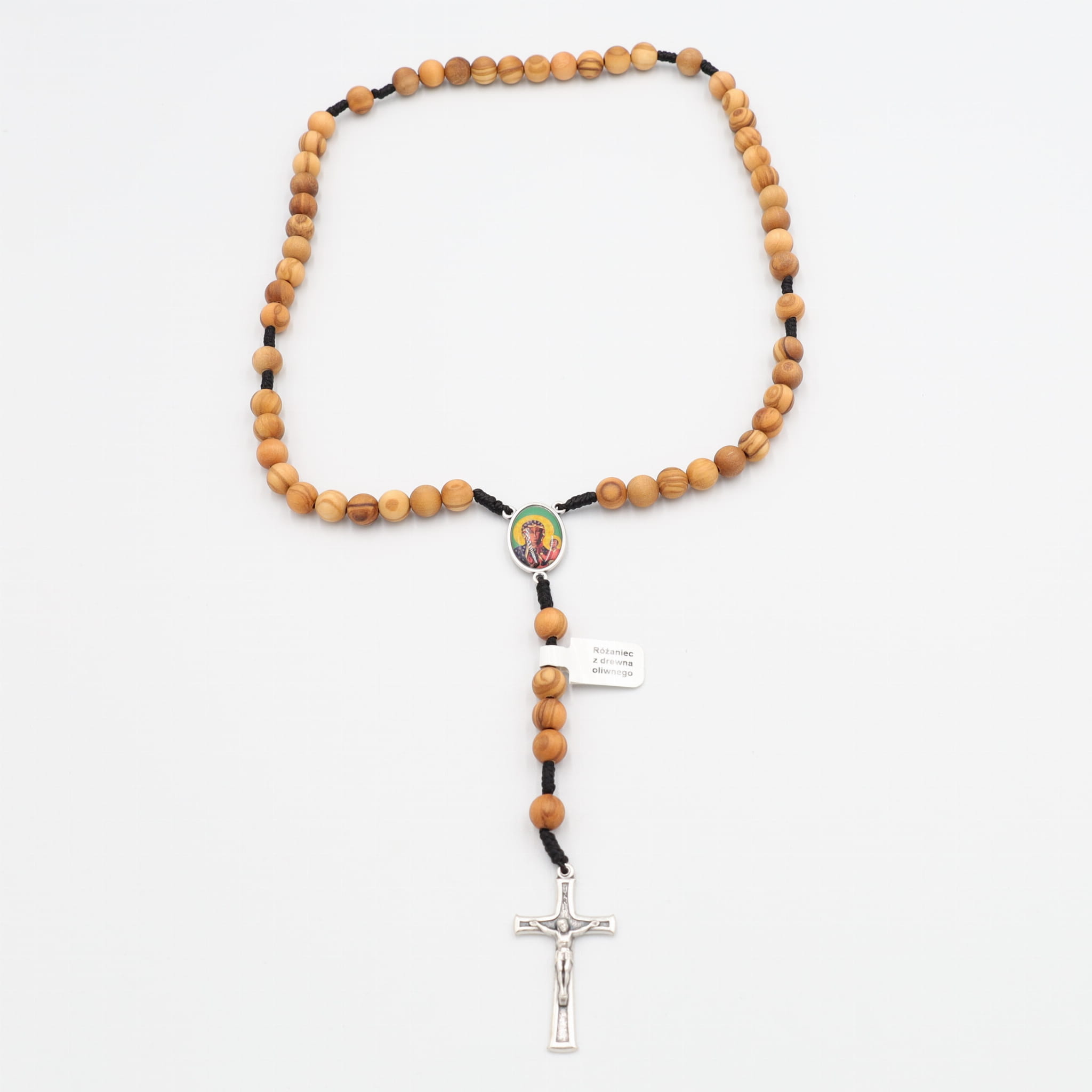 Różaniec z drewna oliwnego 8 mm na sznurku - łącznik na wklejkę-FT4
