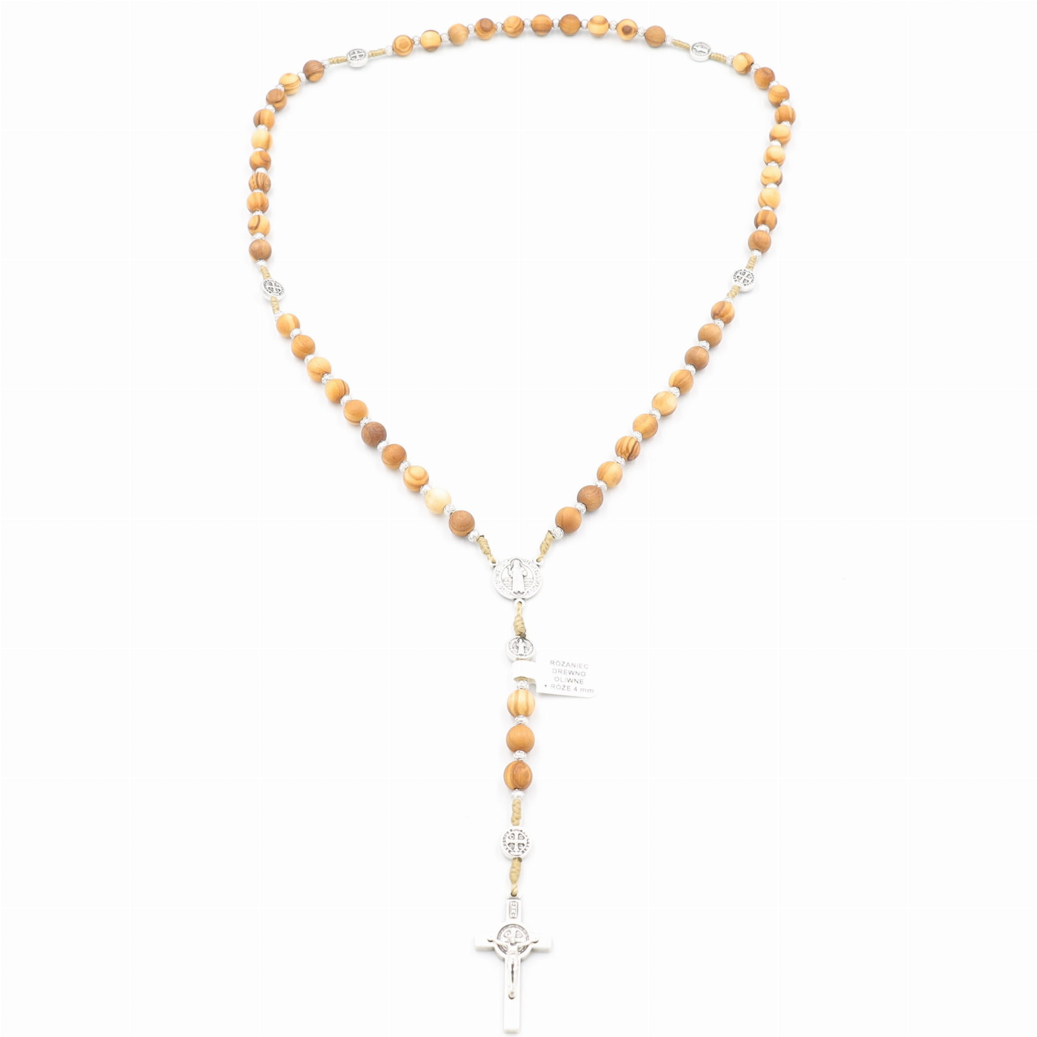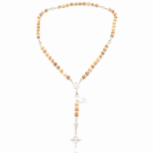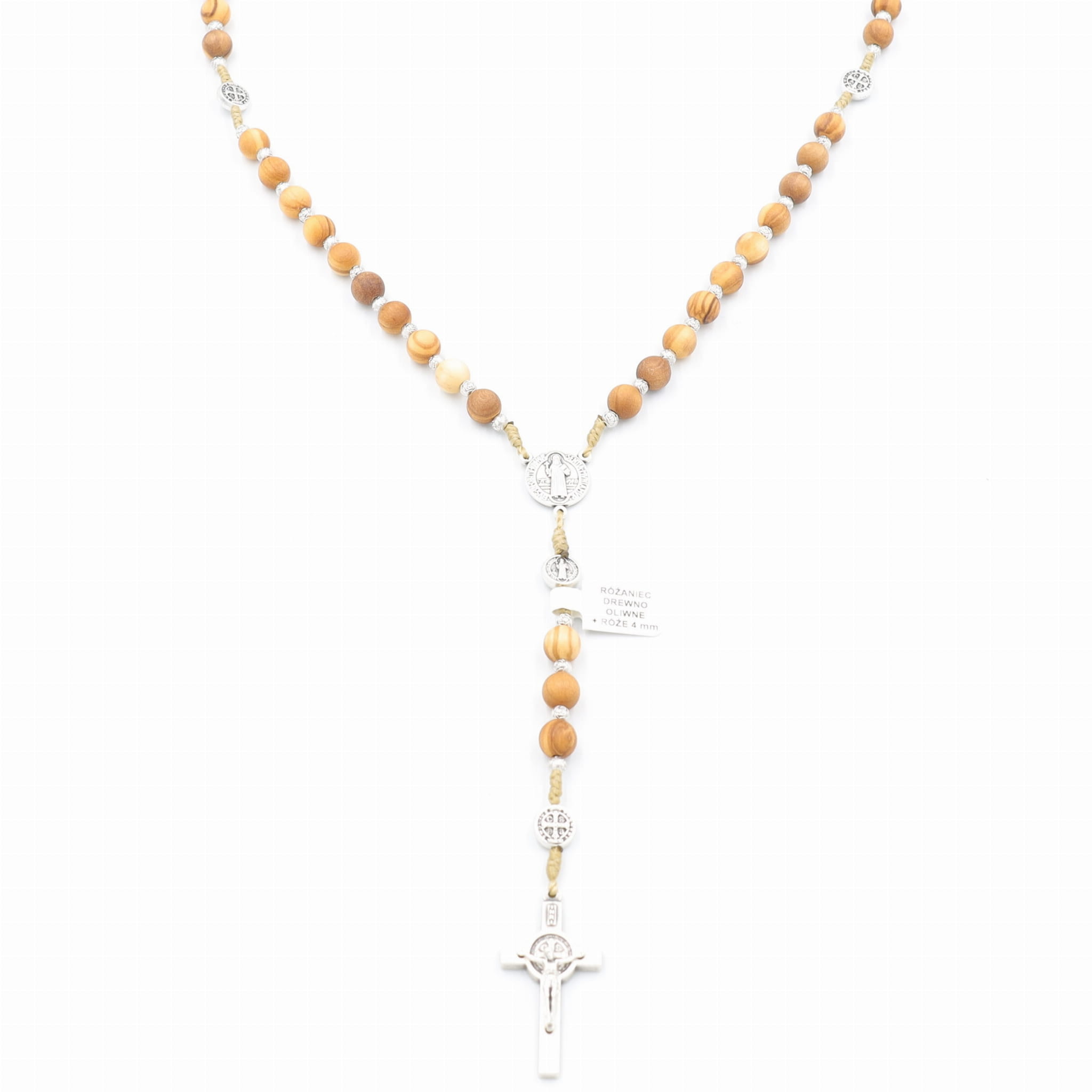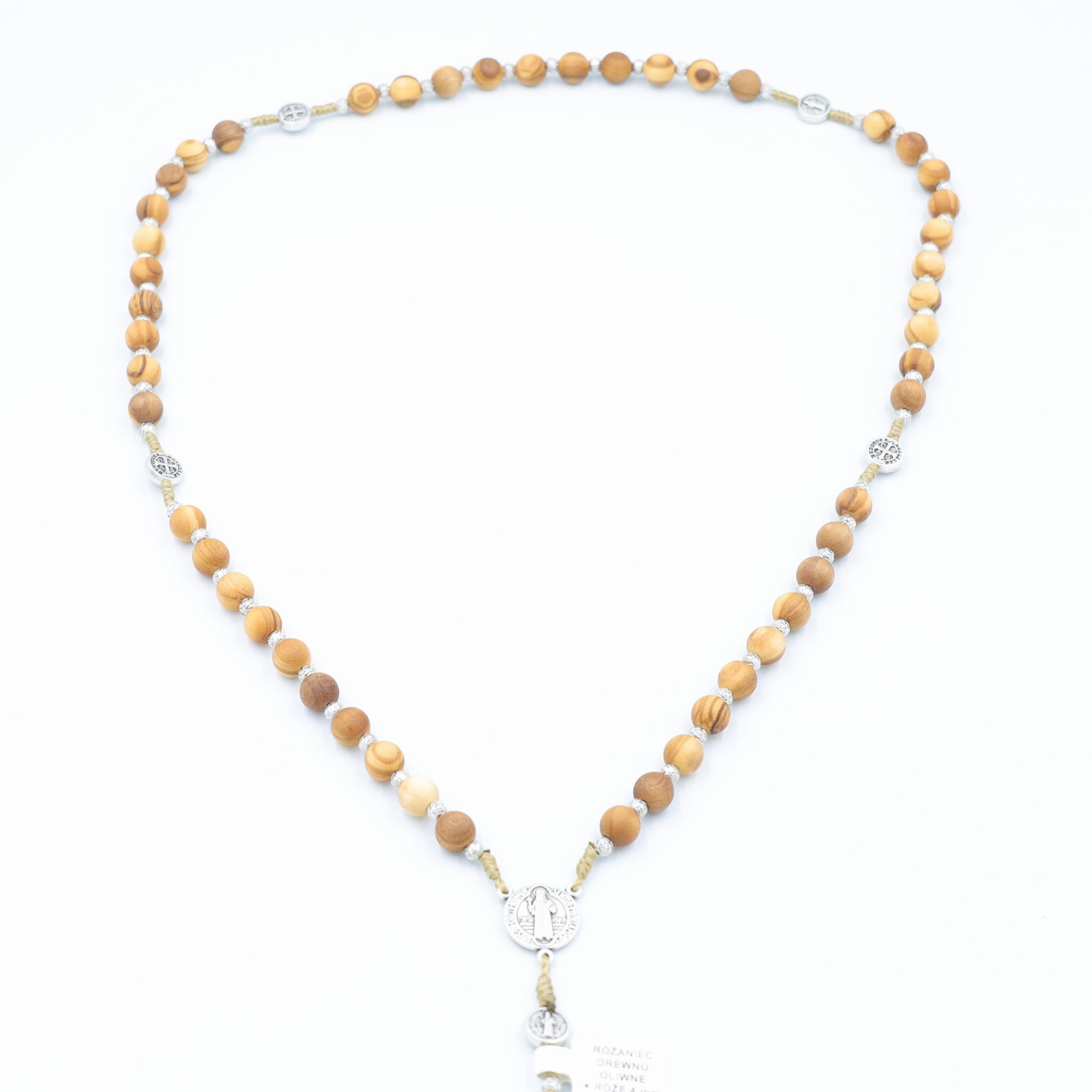Różaniec z drewna oliwnego 8 mm - róże 4 mm - Św. Benedykt