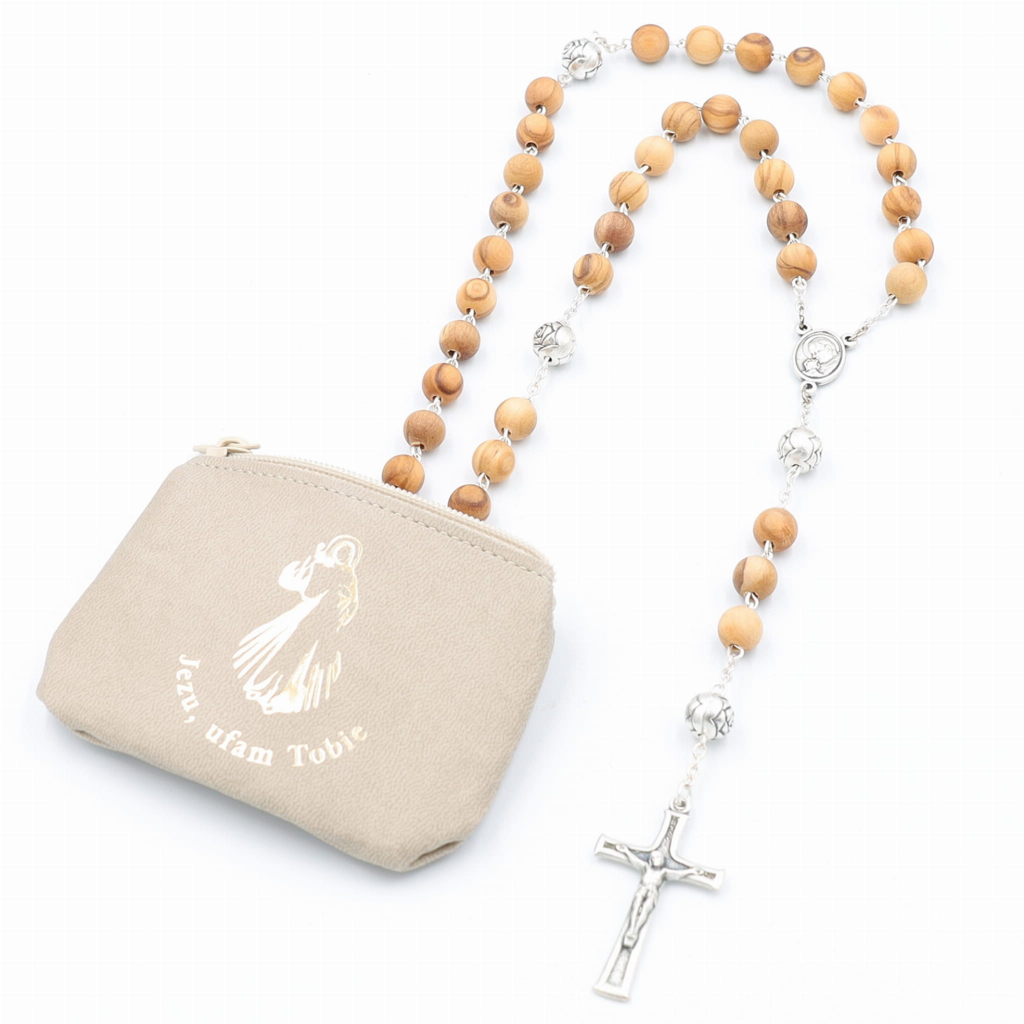 Różaniec z drewna oliwnego 8 mm - róże 8 mm